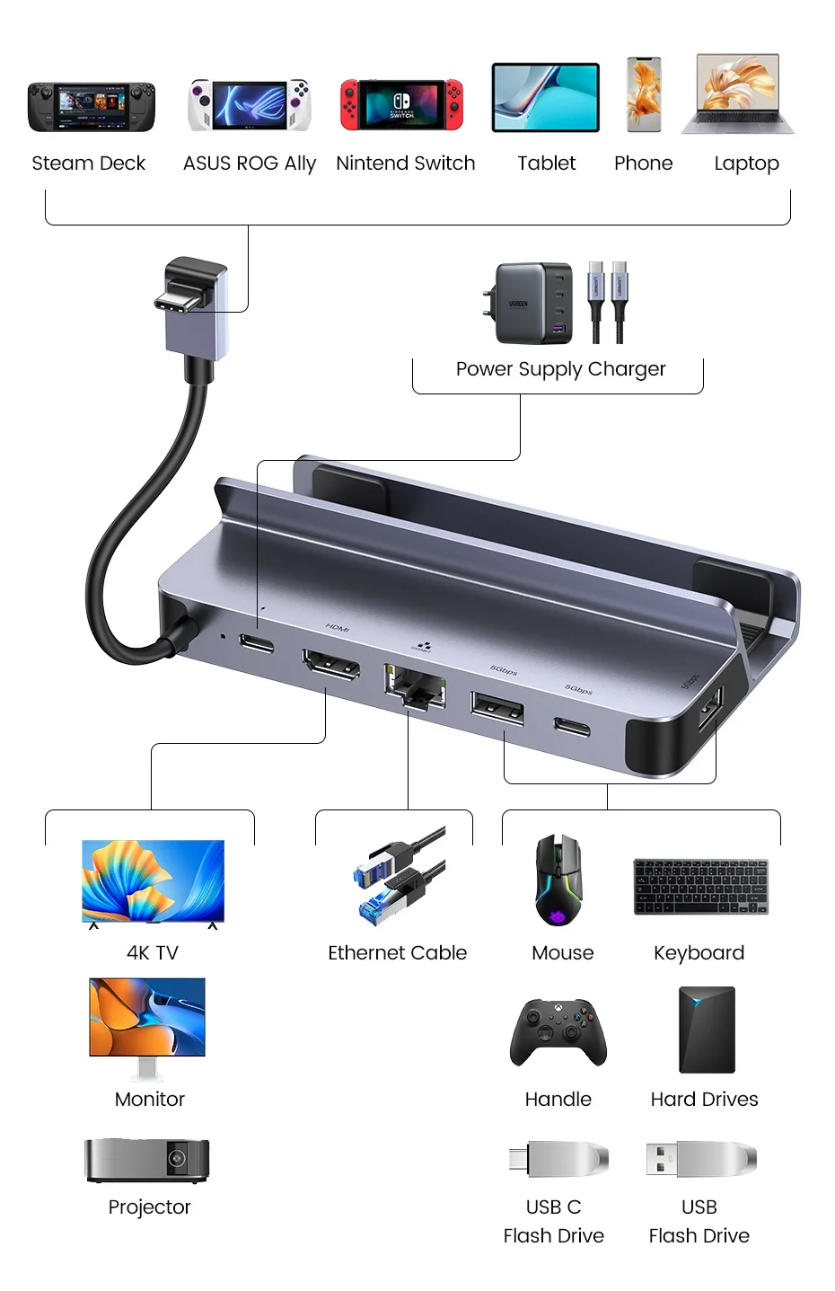 El conector USB C NO es SOLO para la cubierta de Steam, también funciona con dispositivos inteligentes con puertos de USB-C, como Nintendo Switch,ASUS ROG Ally, PC, tableta, teléfono, computadora portátil...