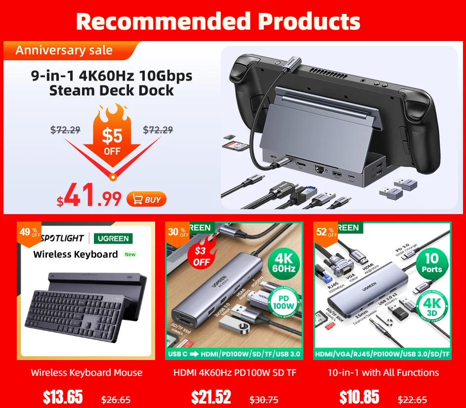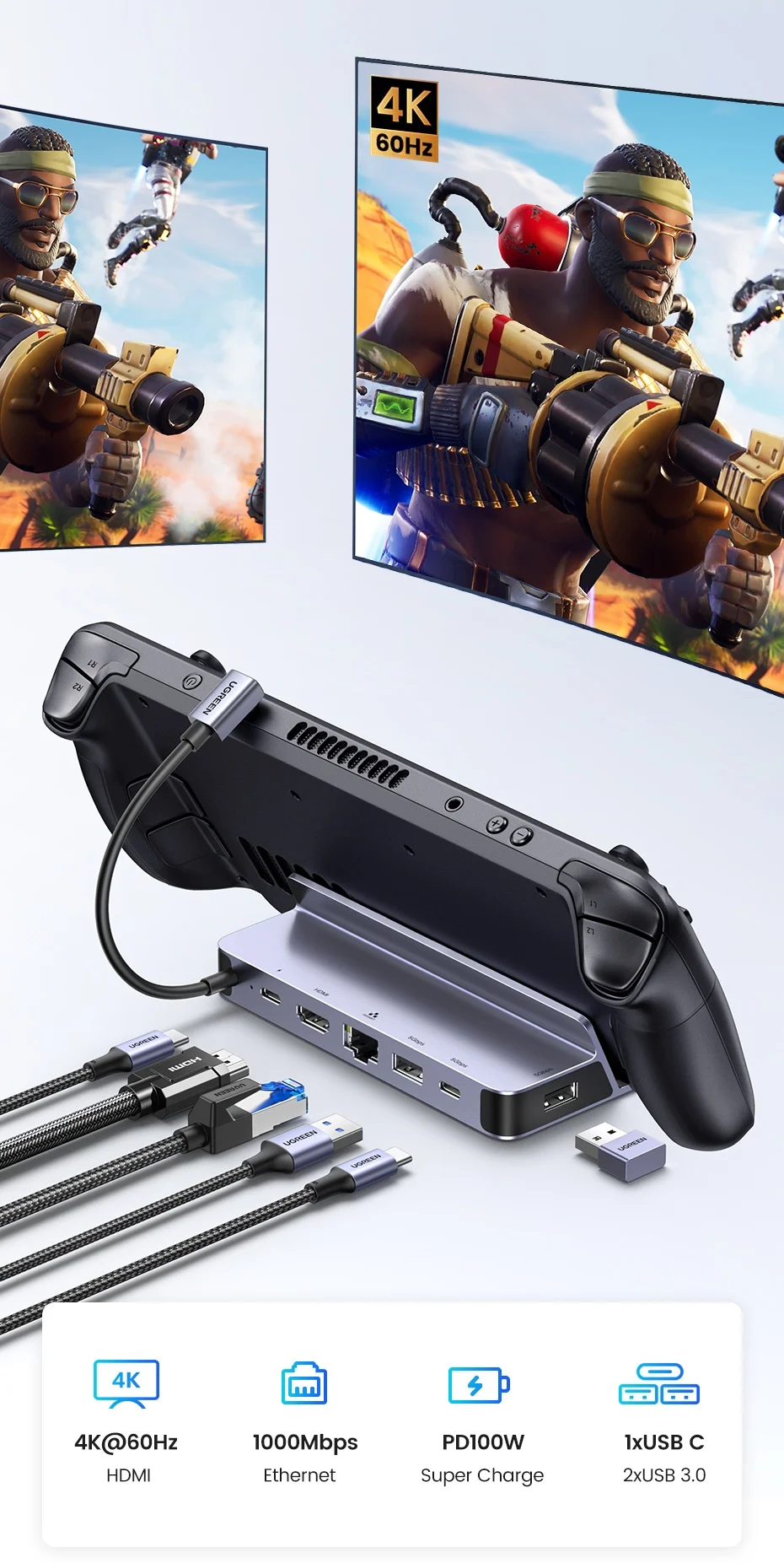 Comprar UGREEN-estación de acoplamiento USB tipo C a HDMI, 4K60Hz, RJ45, PD100W, para Steam Deck, Nintendo Switch, MacBook Pro Air, PC, HUB USB 3,0