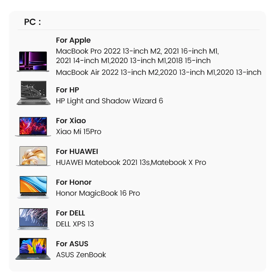 ① Soporte 4K60Hz 8-bit RGB para Lenovo Xiaoxin Pro16 BOOK,HP Light and Shadow Wizard 6,HUAWEI MATEBOOK 2021 13S, Honor MagicBook 16 Pro,DELL XPS 13,ASUS ZenBook, surface Pro 7;
