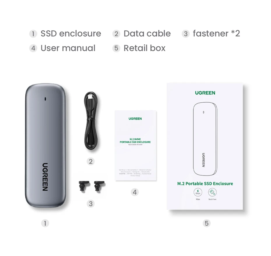 Comprar UGREEN-funda de SSD para disco duro externo M.2, carcasa de SSD de 6gbps, NGFF, SATA M2, USB, M & b-key