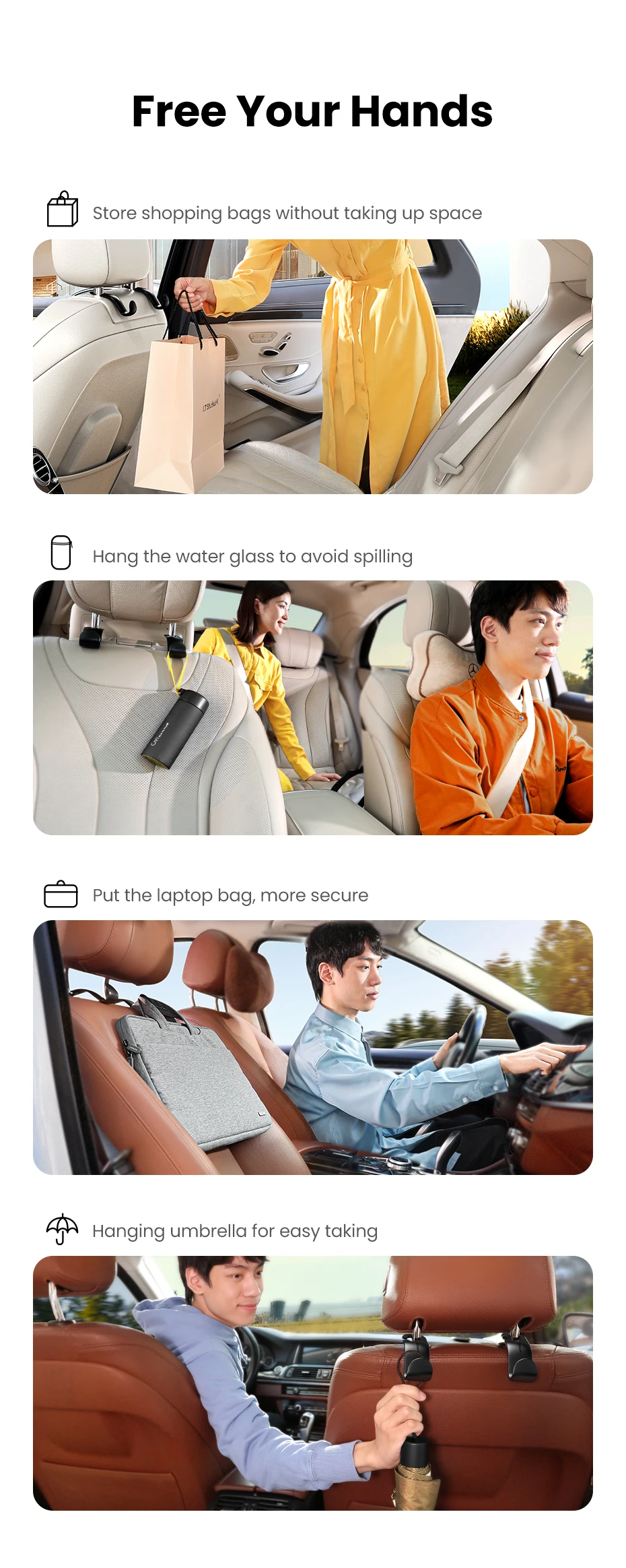 Comprar Ugreen-ganchos ajustables para reposacabezas de coche, organizador de bolsa de comestibles, accesorios de almacenamiento, 2 uds.