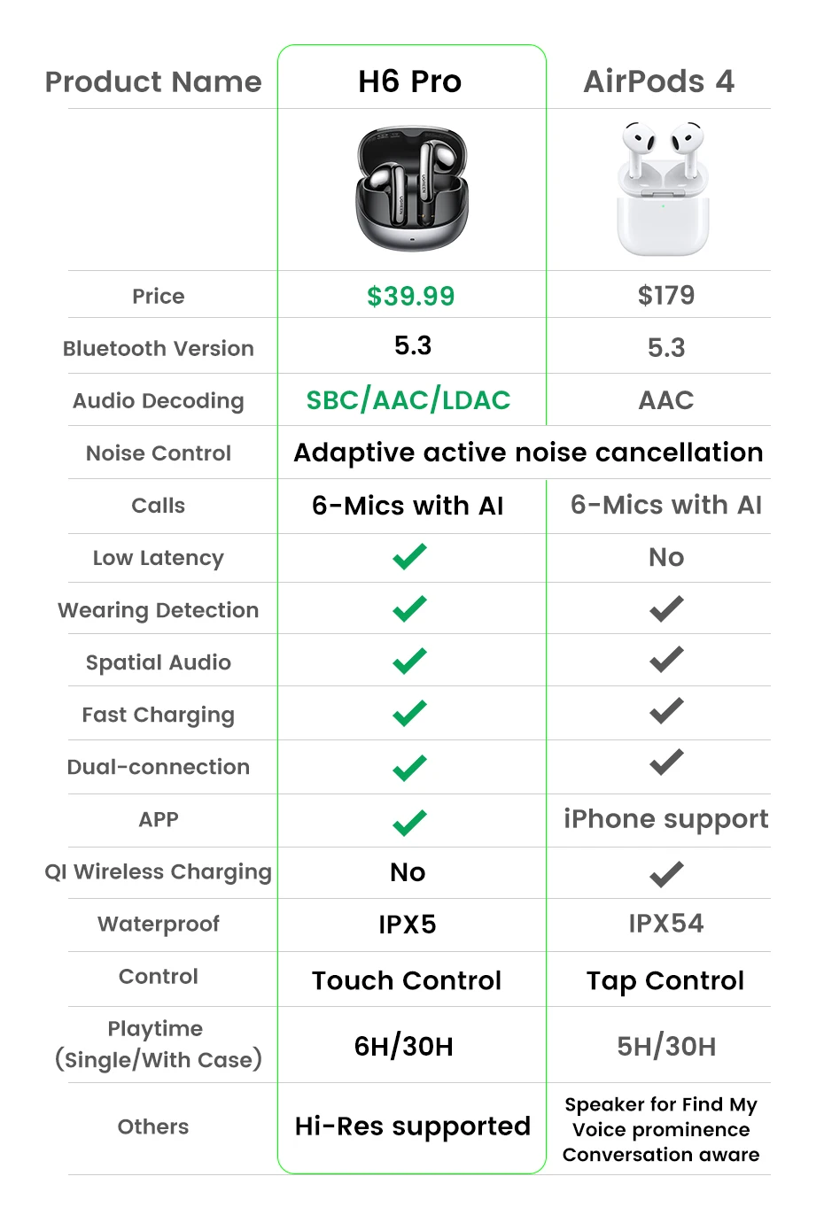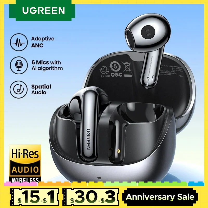 Comprar UGREEN H6 Pro Semi-abierto TWS auriculares adaptables con cancelación activa de ruido LDAC Audio de alta resolución auriculares inalámbricos Bluetooth