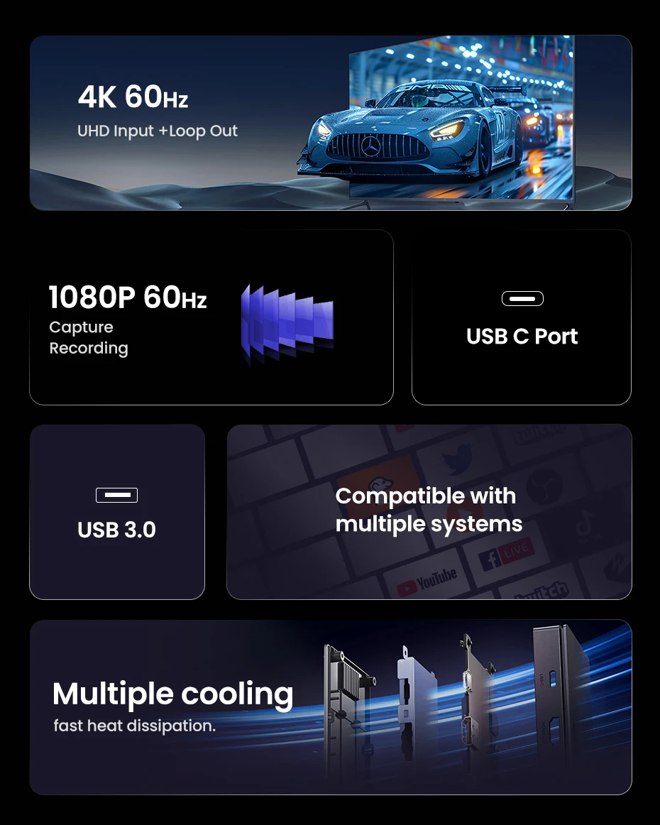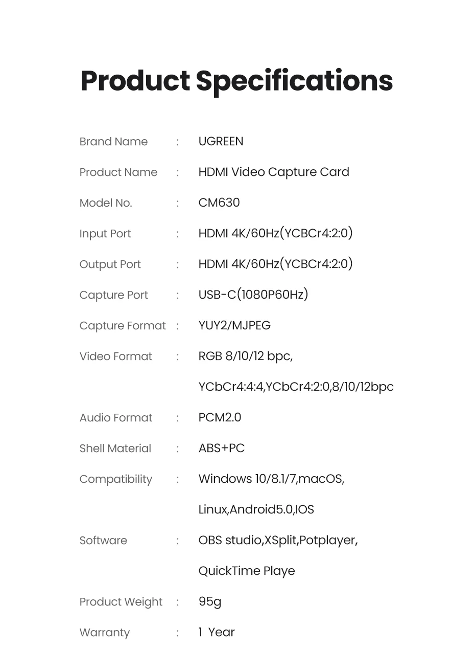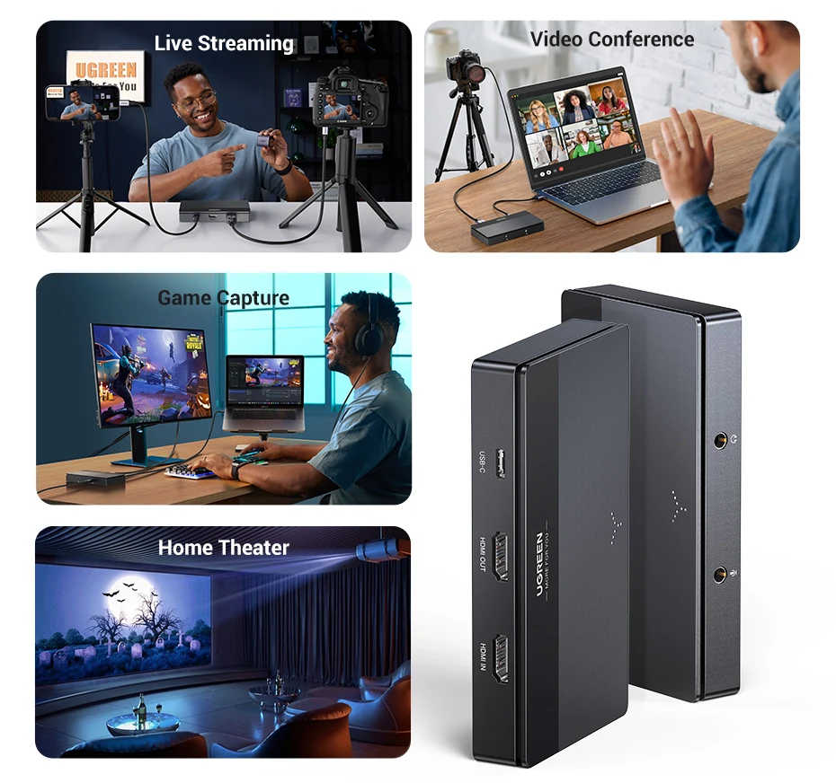 Comprar UGREEN HDMI 4K60Hz Tarjeta de captura de vídeo HDMI a USB/Tipo-C Video Grabber Box para cámara de computadora Grabación de transmisión en vivo Reunión