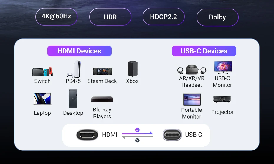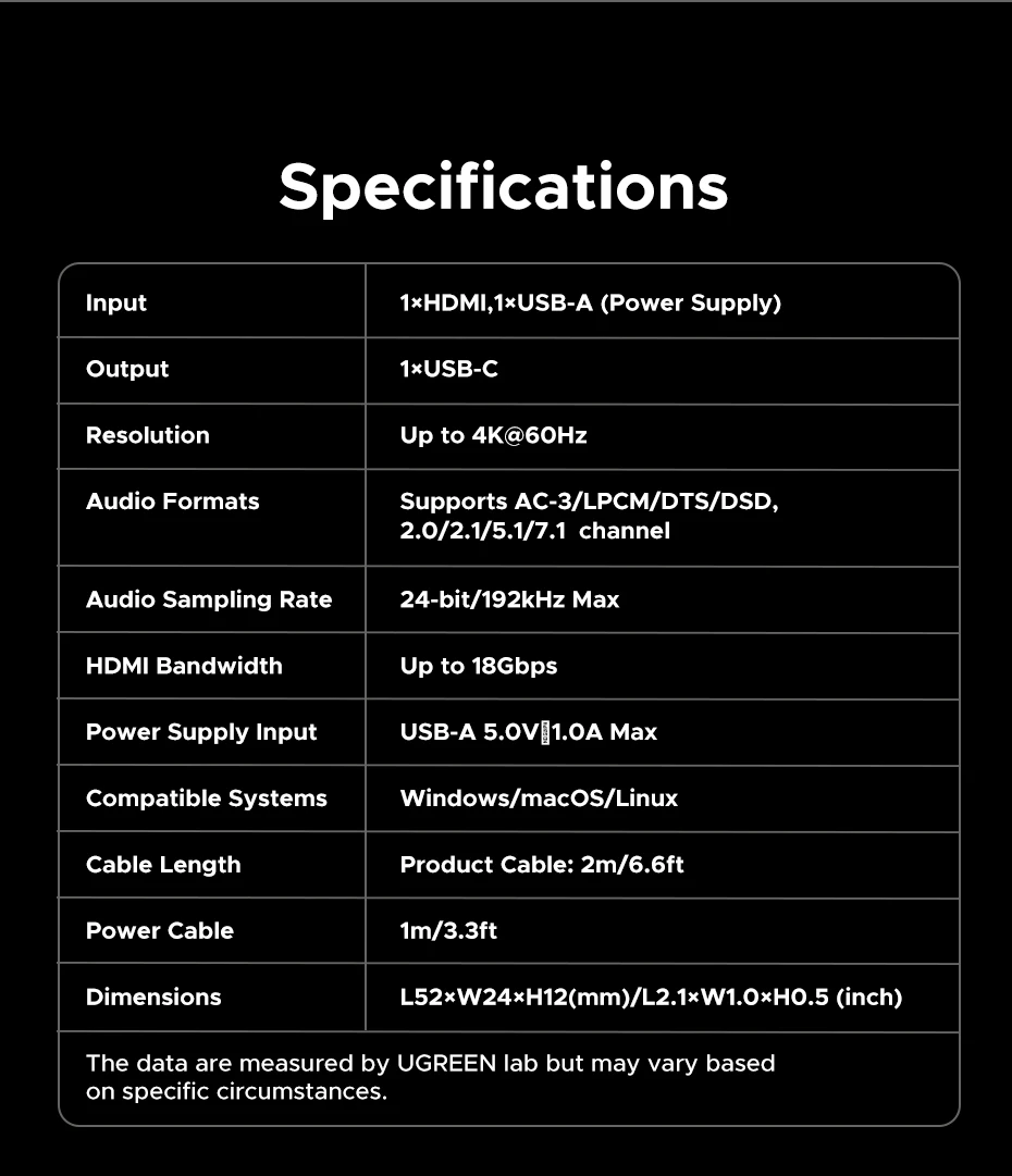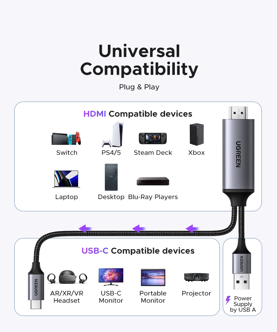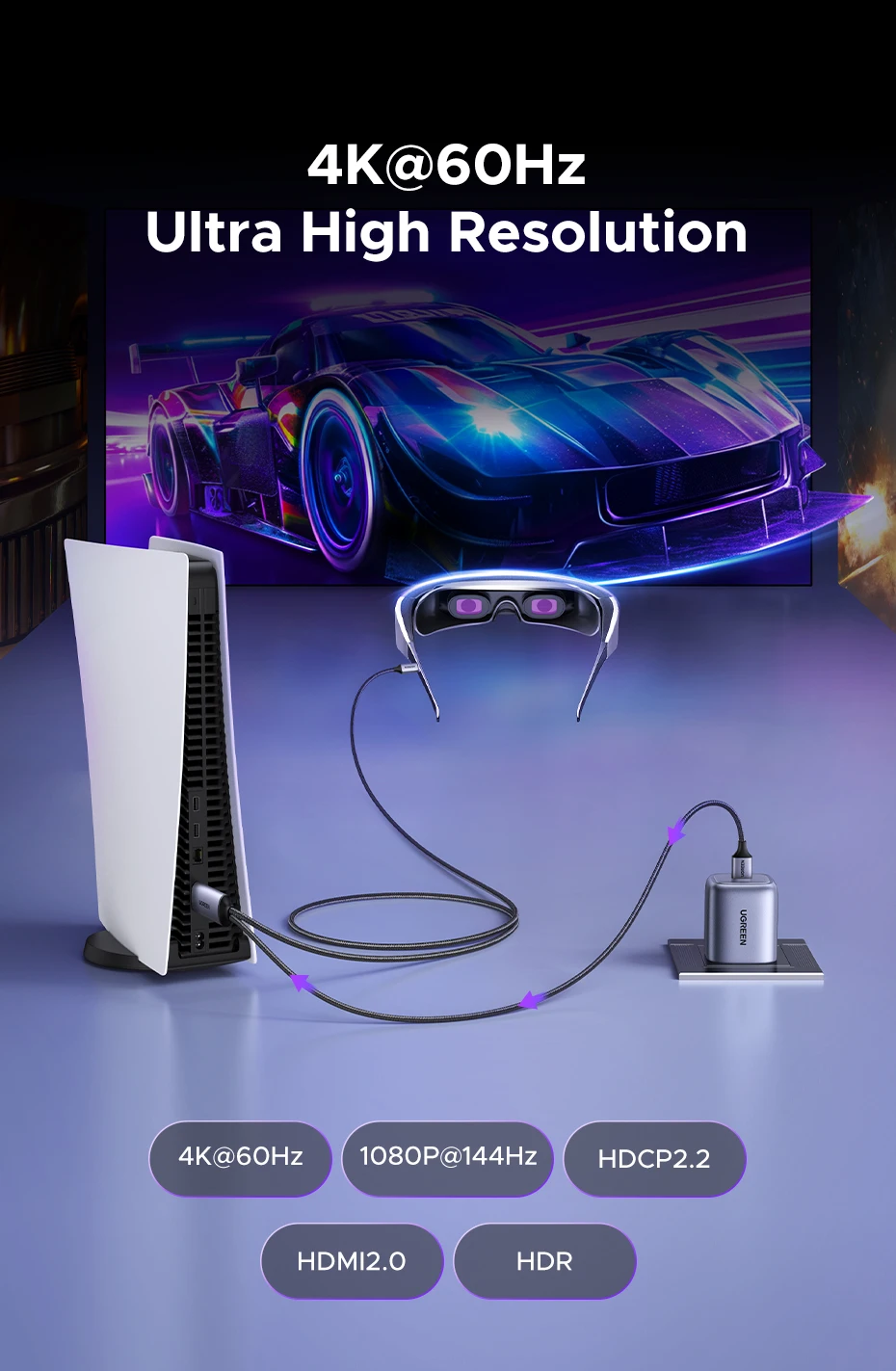 UGREEN HDMI a USB C Cable adaptador Audio Video pantalla 4K 60Hz HDR HDCP2.2 Dolby con fuente de alimentación USB para PS4/5 Switch Xbox PC