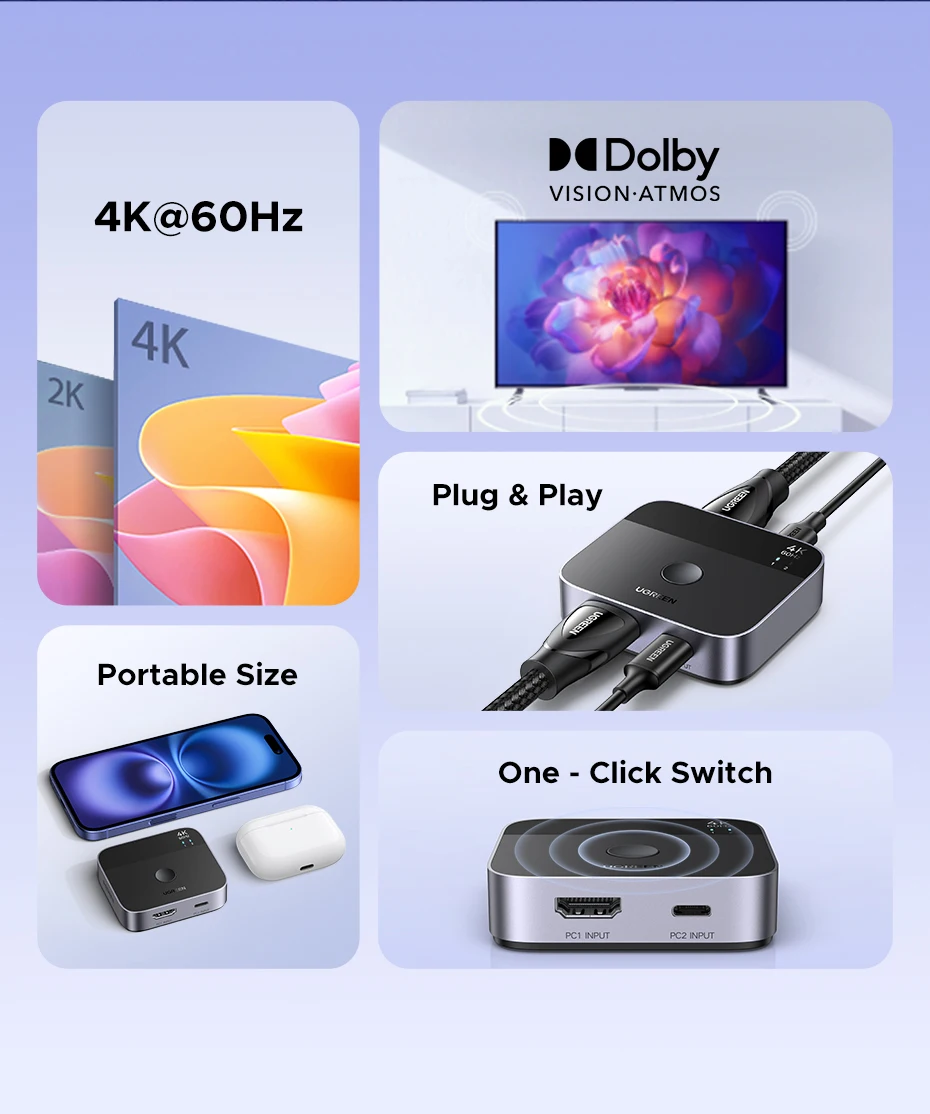 Interruptor HDMI de oficina de transmisión de múltiples dispositivos para PS5 Xbox PC proyector Monitor portátil 4K TV HDR consola de juegos