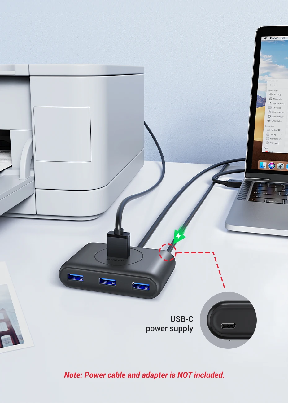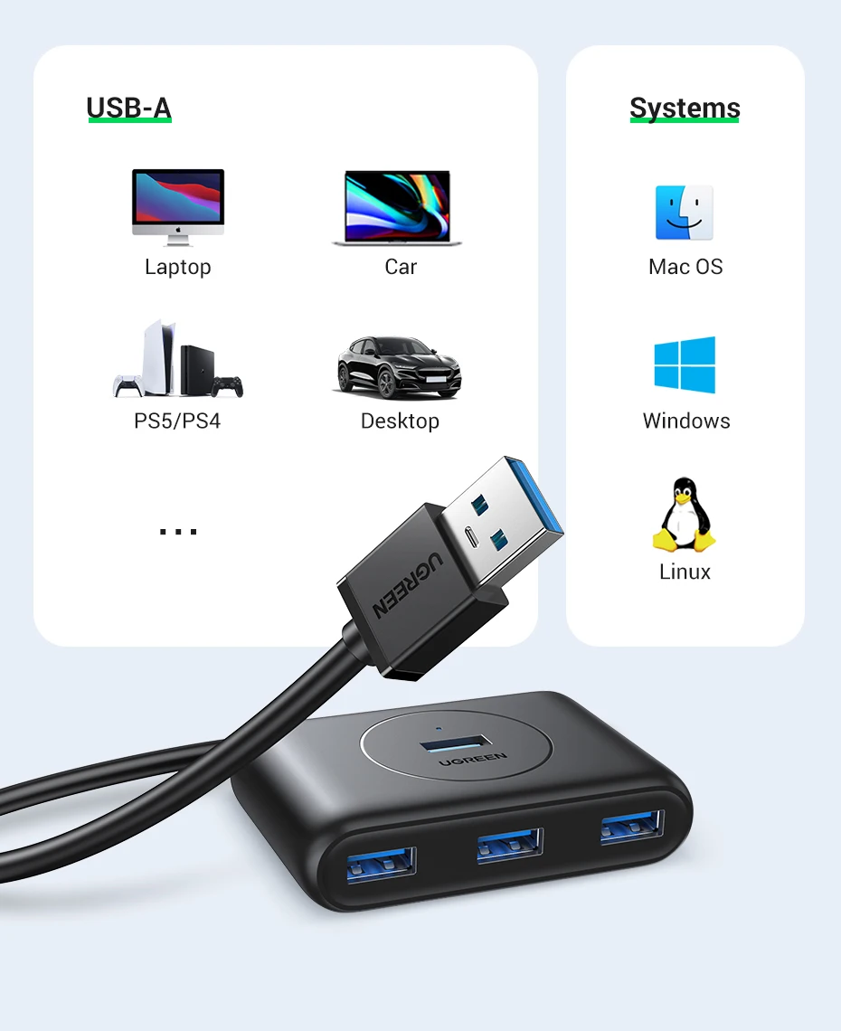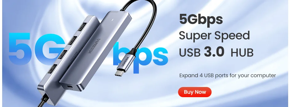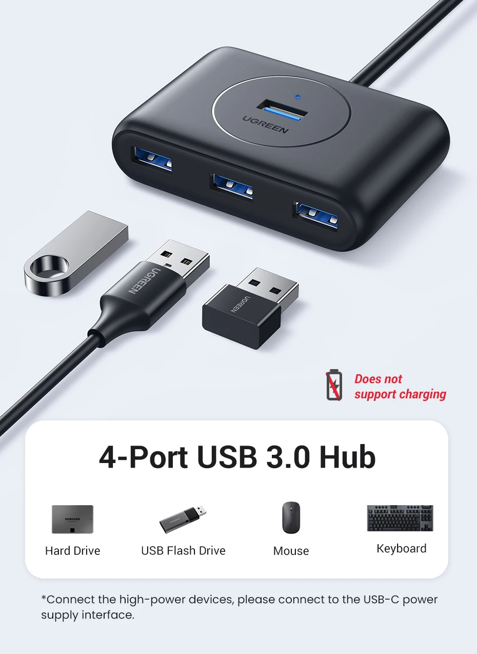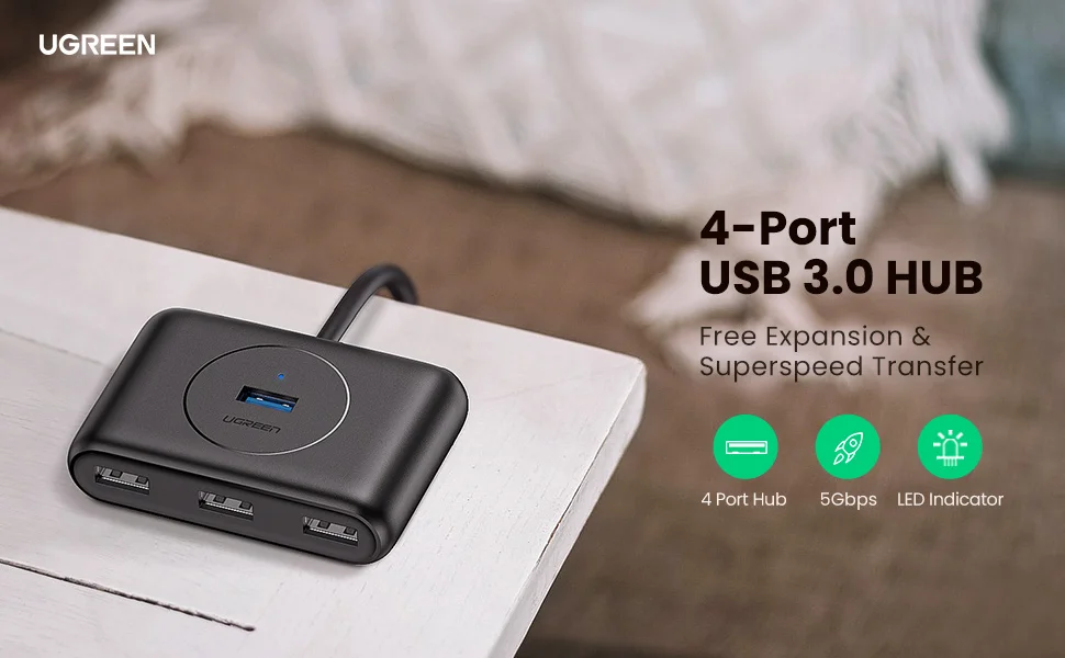 Comprar UGREEN-Hub USB 3,0 de 4 puertos, divisor de alta velocidad para discos duros, unidad Flash USB, ratón, teclado, adaptador extendido, Hub USB 3,0