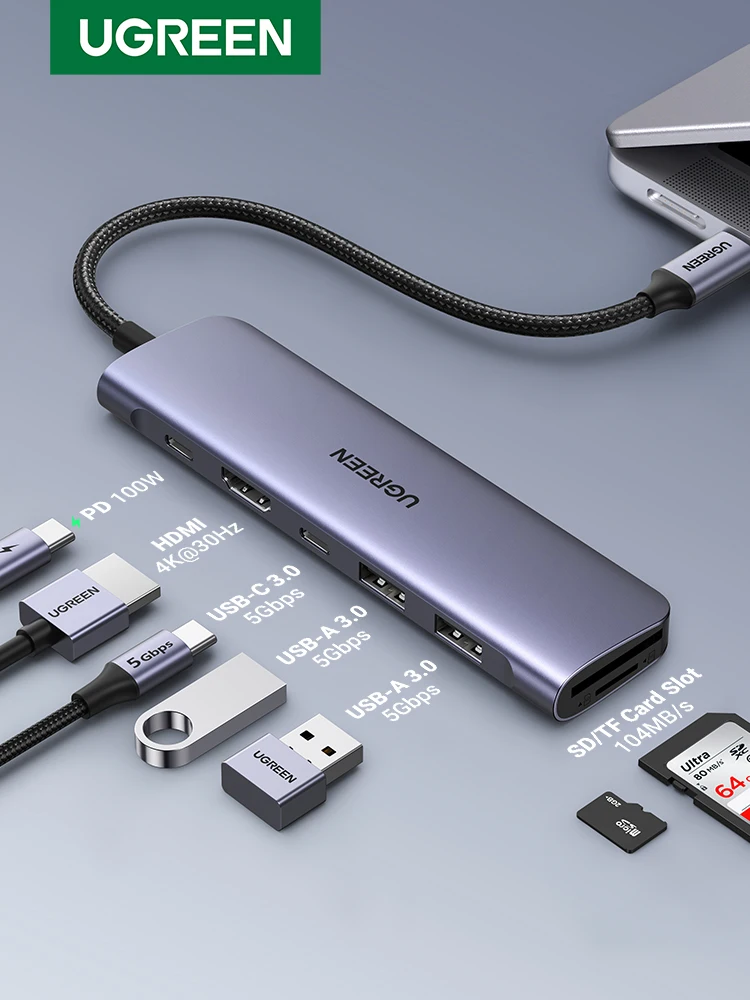 Comprar UGREEN-HUB USB tipo C 3,1 a HDMI 4K SD TF PD 100W, adaptador para Macbook iPad Pro Air M2 M1, accesorios para PC, 5gbps, HUB USB C 3,0