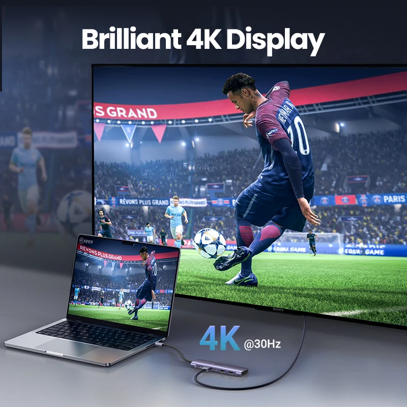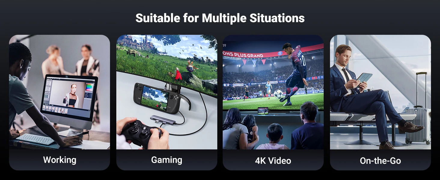 Duplique o extienda su pantalla con el adaptador UGREEN USB C a HDMI para transmitir directamente 4K UHD, Full HD 1080p o video 3D a HDTV, monitor o proyector. No solo puede disfrutar de películas con su familia en una pantalla más grande, sino también hacer una presentación vívida en una reunión.