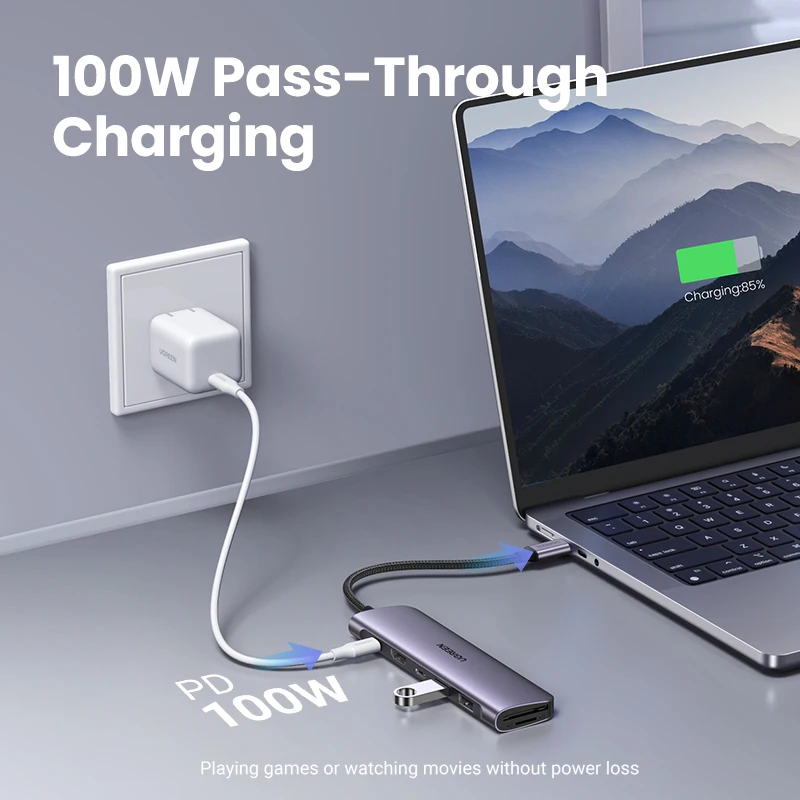 Carga de energía súper rápida: el dongle de carga rápida de 100W ofrece una entrega de energía continua para su dispositivo host con un máximo de 95W mientras transfiere archivos o transmite medios para Macbook pro Air iPad, no se preocupe por cortes de energía. (El puerto solo admite carga y NO admite transmisión de datos y salida de video).