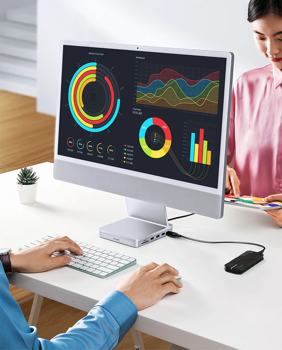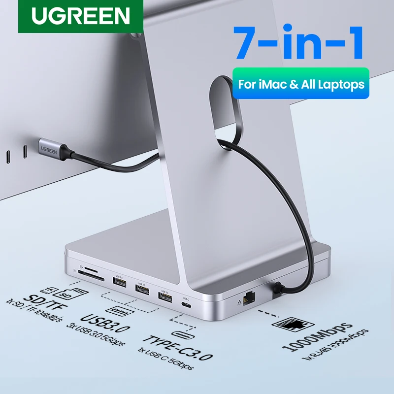 Comprar UGREEN-HUB USB tipo C a USB 3,0, 5Gbps, tarjeta TF/SD, 104 MB/s, para iMac, MacBook, iPad Pro, Air, PC, accesorios magnéticos 5 en 1