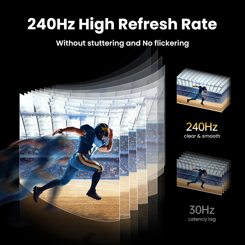Soporta las últimas resoluciones 8K @ 60Hz,4K @ 120Hz,1080P @ 240Hz.
