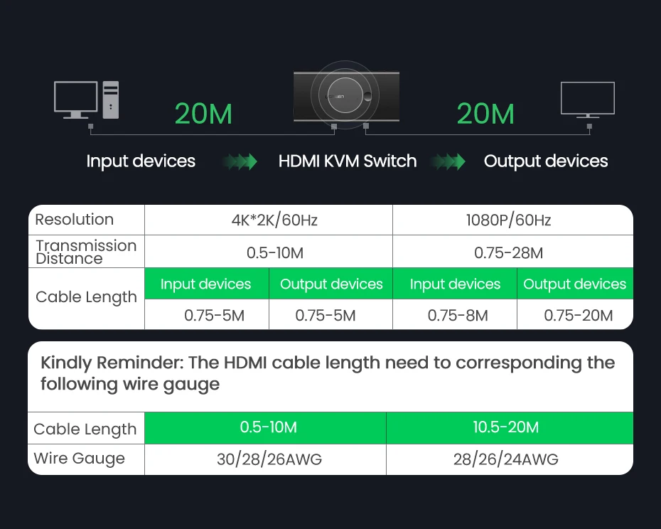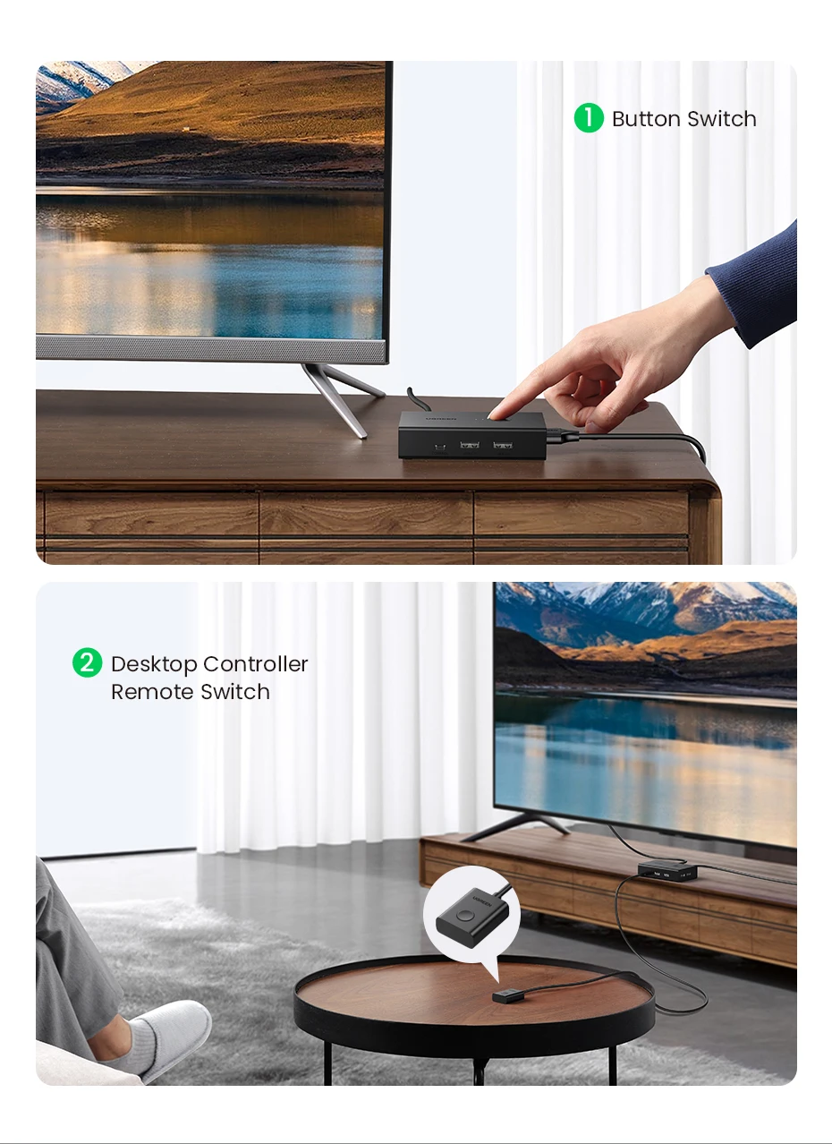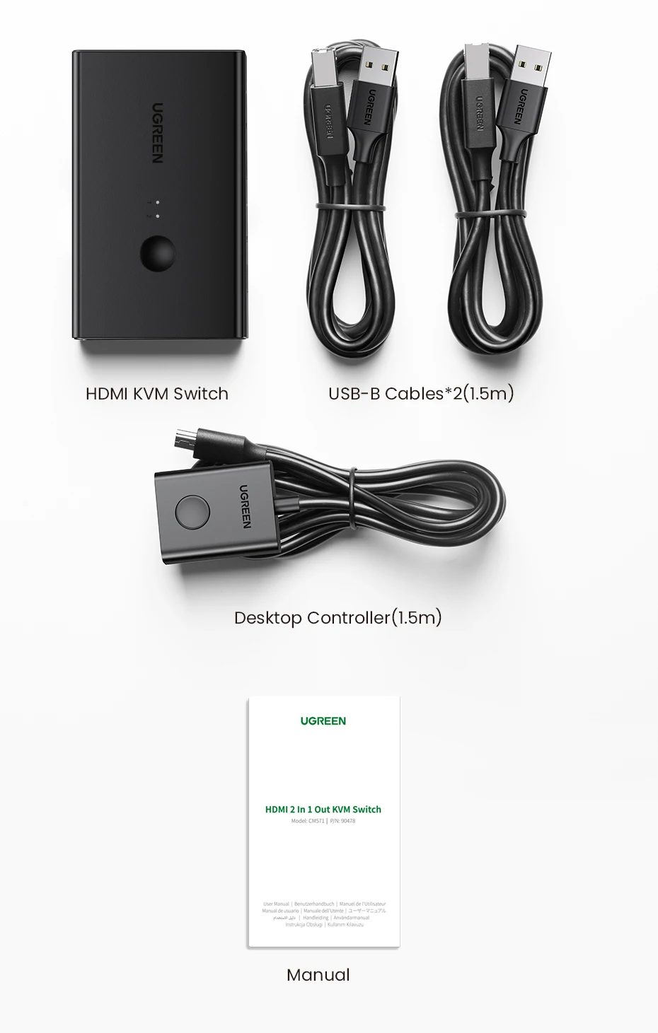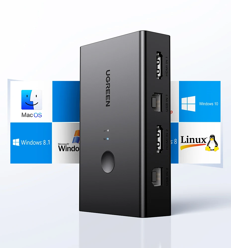 Comprar UGREEN-interruptor HDMI KVM 4K @ 60Hz, conmutador USB 2,0, 2 en 1, para Monitor de impresora, teclado, ratón, 2 piezas, compartir 1 divisor de dispositivo