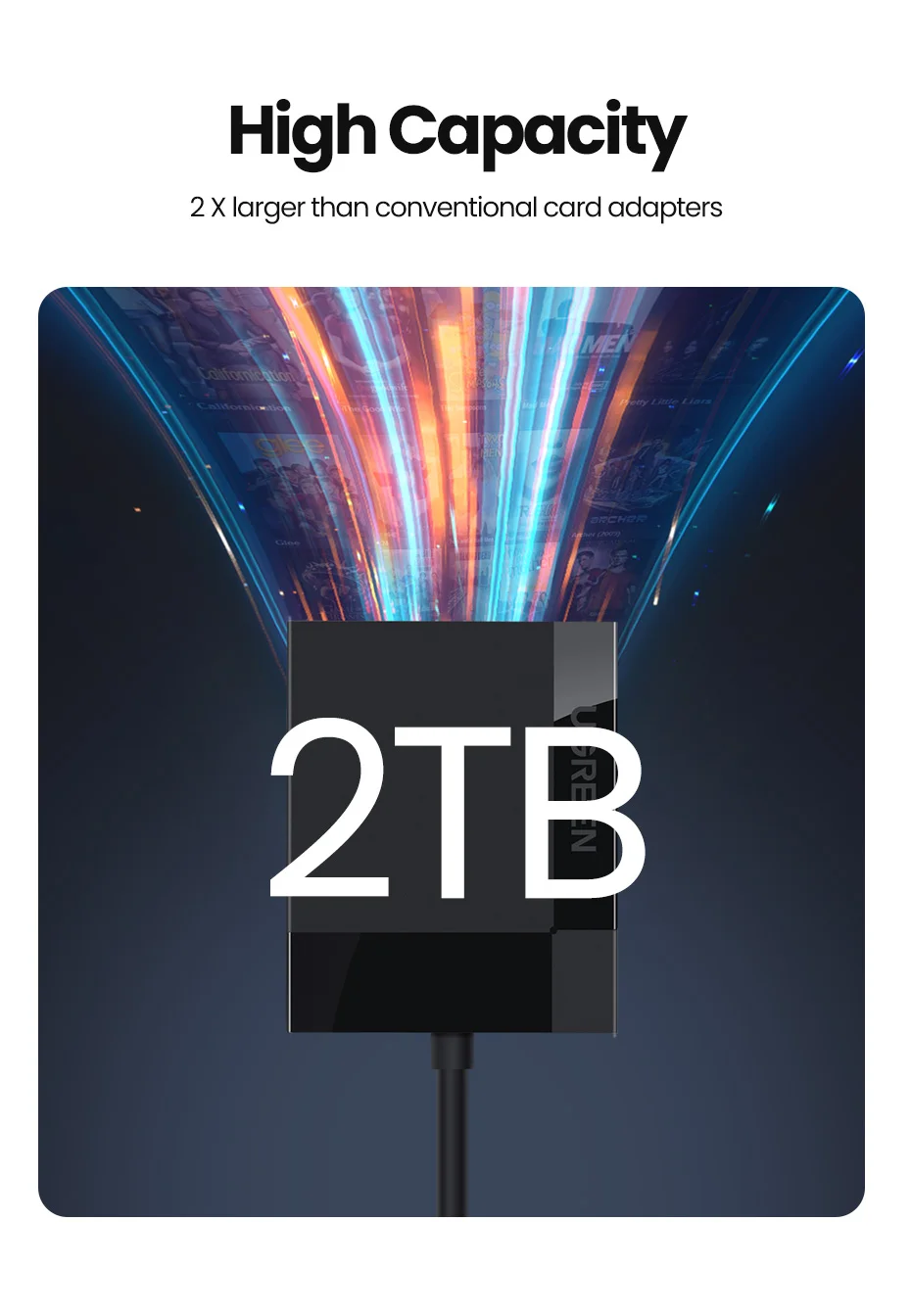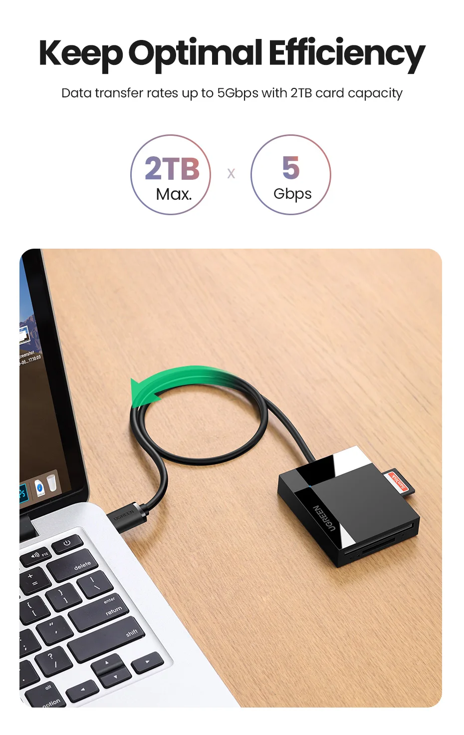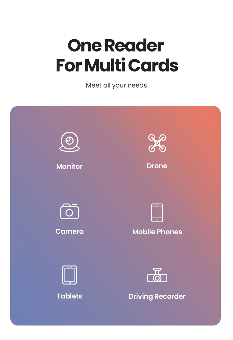 A diferencia de otros adaptadores de tarjetas de lectura única, el lector de tarjetas Ugreen le permite leer 4 tarjetas simultáneamente y lo mantiene alejado de la molestia de desconectar y volver a enchufar constantemente.