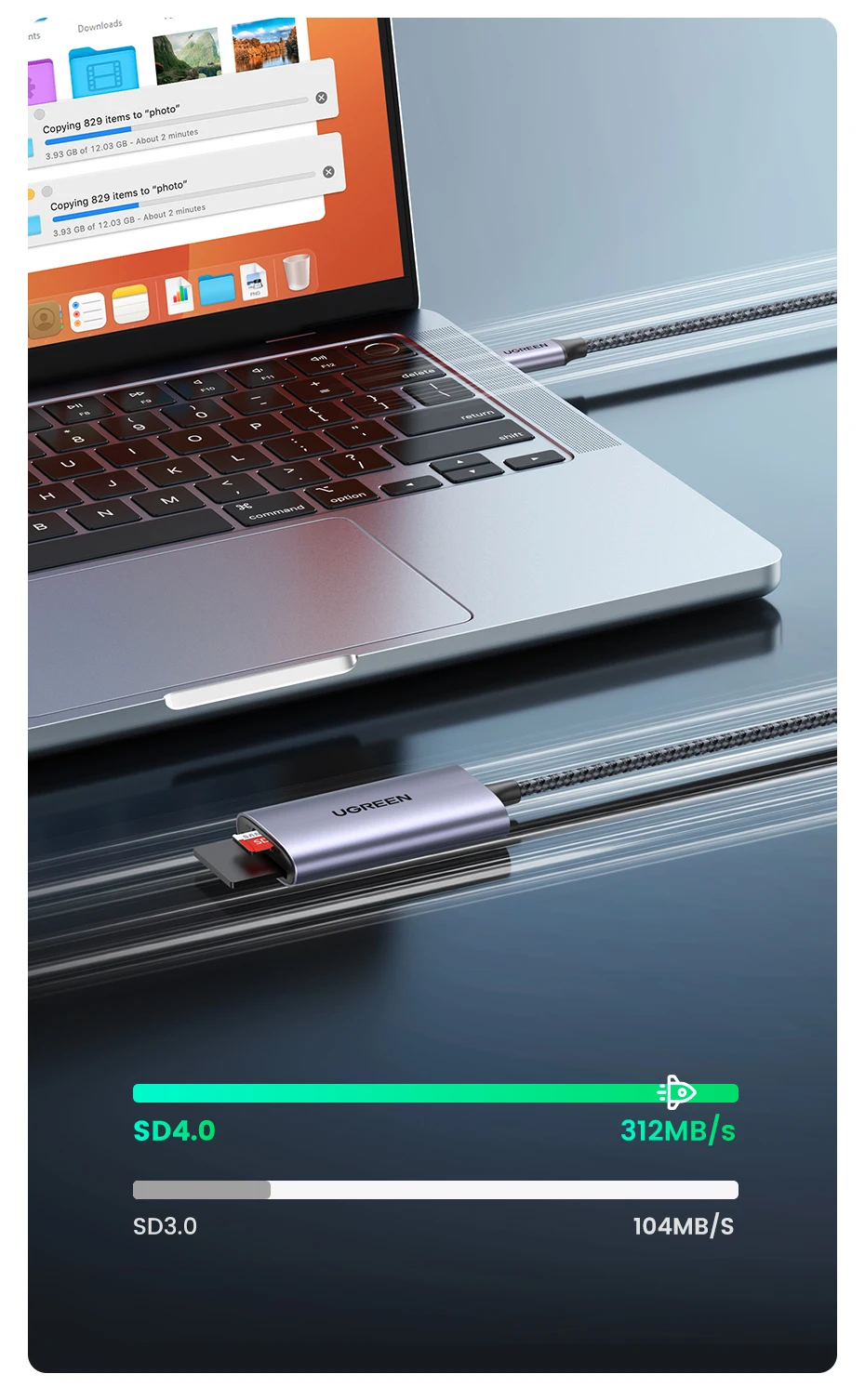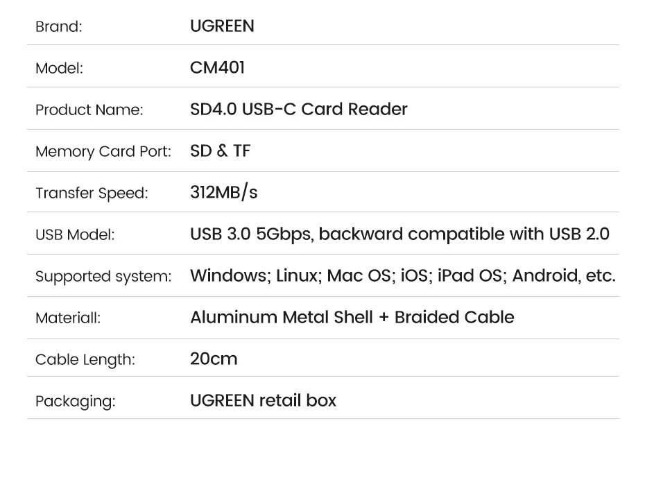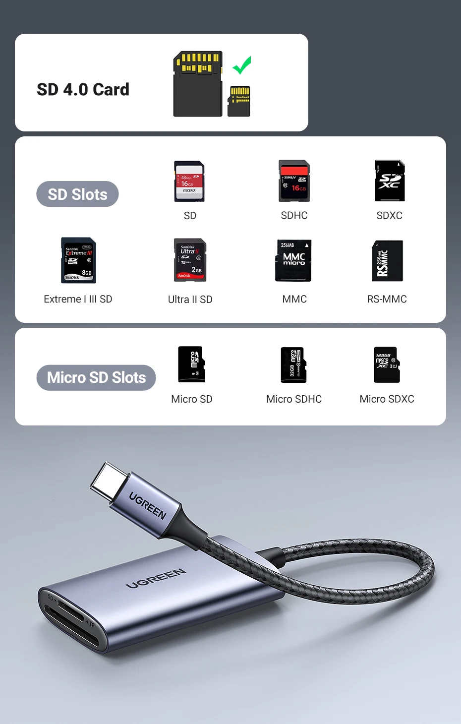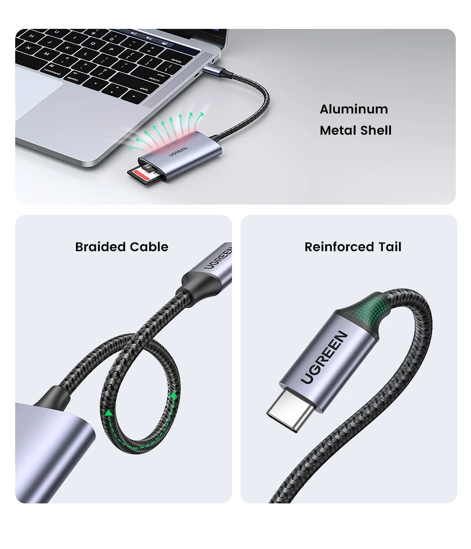 Comprar UGREEN-lector de tarjetas SD4.0, adaptador de tarjeta de memoria TF a SD, MicroSD, USB-C, 312 MB/s, para ordenador portátil, teléfono, Macbook, Windows, MacOS