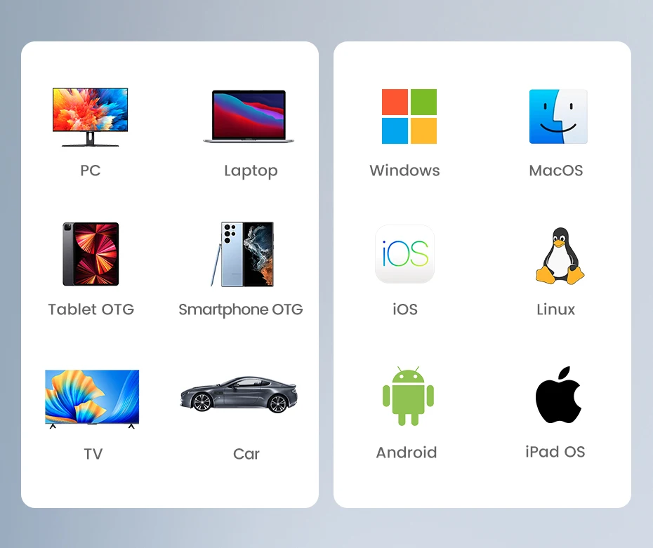 Este controlador de lector de tarjetas es gratuito para la mayoría de los portátiles, tabletas y teléfonos inteligentes con Windows, macOS, Chrome OS, Linux, iPad OS y Android. Solo necesita conectar el lector de tarjetas y las tarjetas de memoria, y compartir fácilmente su vida con amigos. (Nota: Los teléfonos Android deben ser compatibles con la función OTG para su uso)