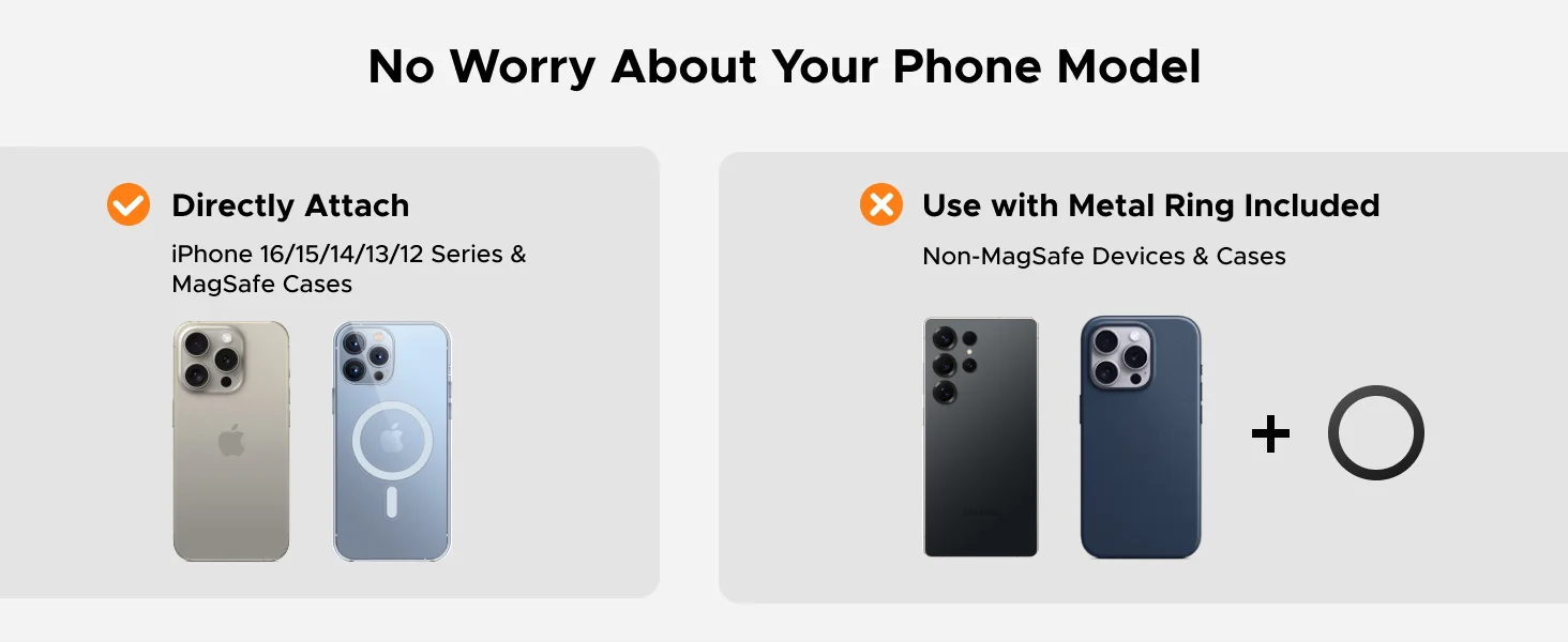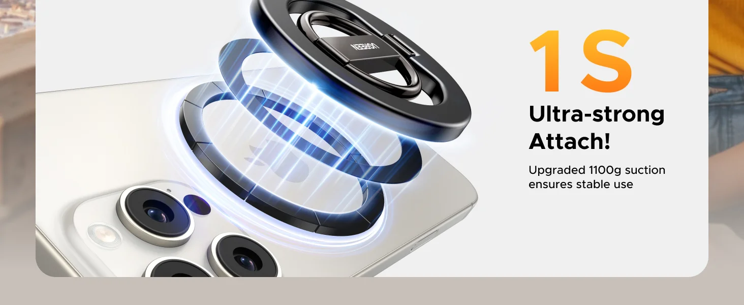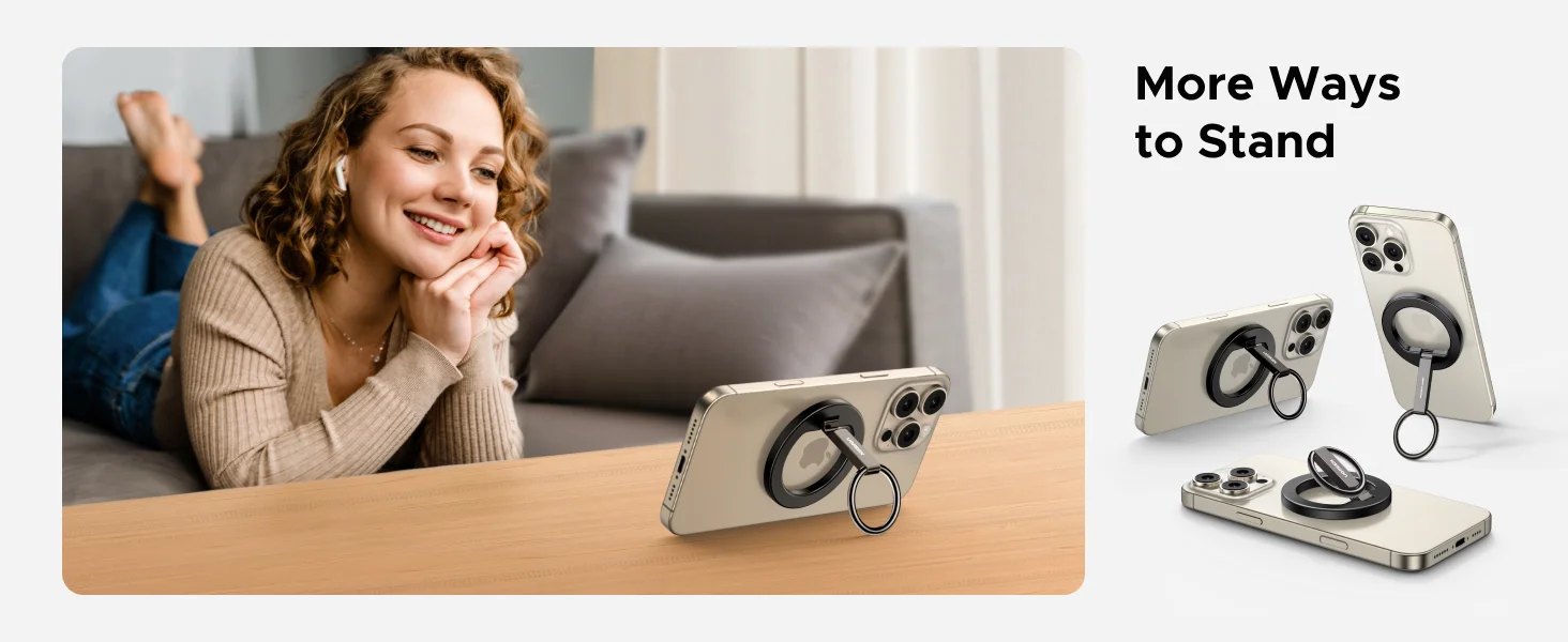 El anillo llegó rapidísimo (menos de 2 semanas a Sudamérica). La calidad de construcción es excelente, y los imanes son bastante fuertes (usándolo con una funda MagSafe). Lo recomiendo.