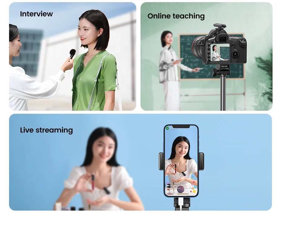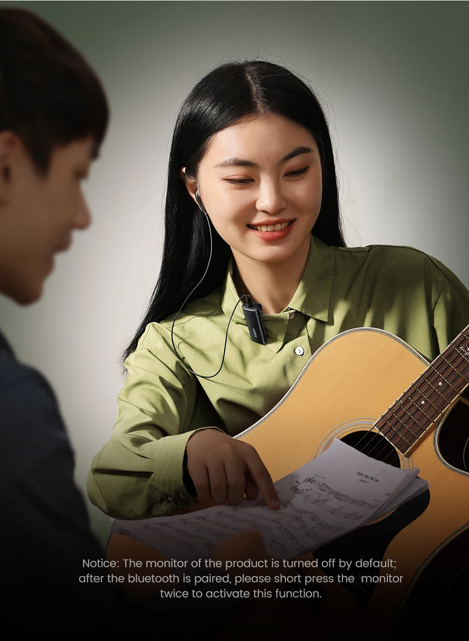 Este micrófono inalámbrico tiene una función de monitor en tiempo real.Viene con un auricular con cable con puerto de 3,5 mm, por lo que es fácil monitorear su voz en tiempo real cuando está transmitiendo en vivo, grabando o enseñando en línea, etc.