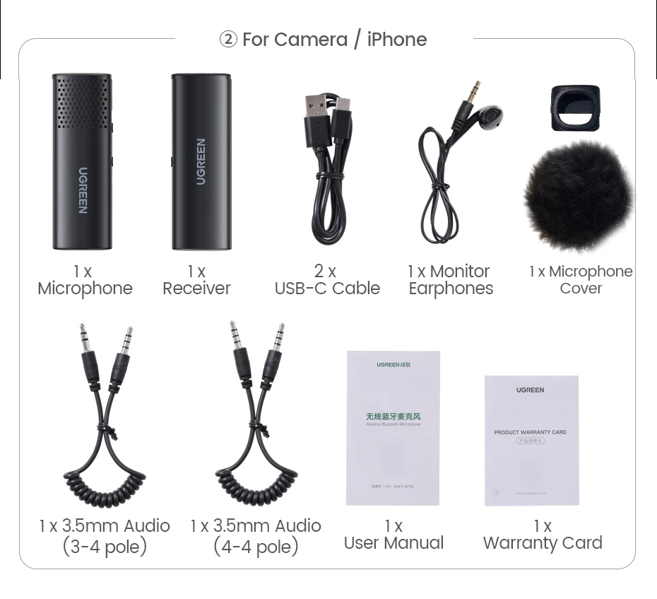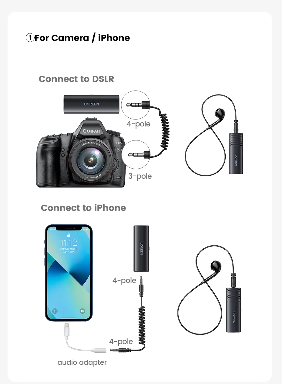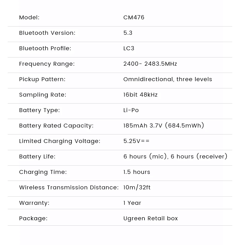 Comprar UGREEN-micrófono inalámbrico Lavalier Omni, con reducción de ruido, Bluetooth 5,3, para cámara, grabación de vídeo, transmisión en vivo