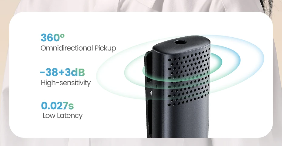 El micrófono de alta sensibilidad reduce la interferencia del entorno para proporcionar un audio profesional limpio y claro.