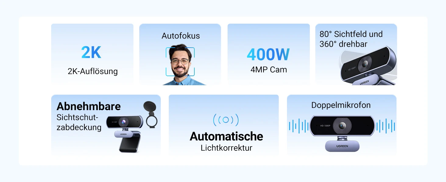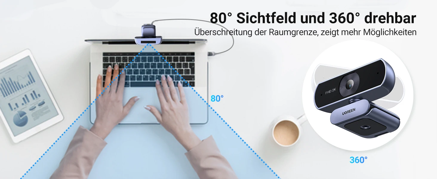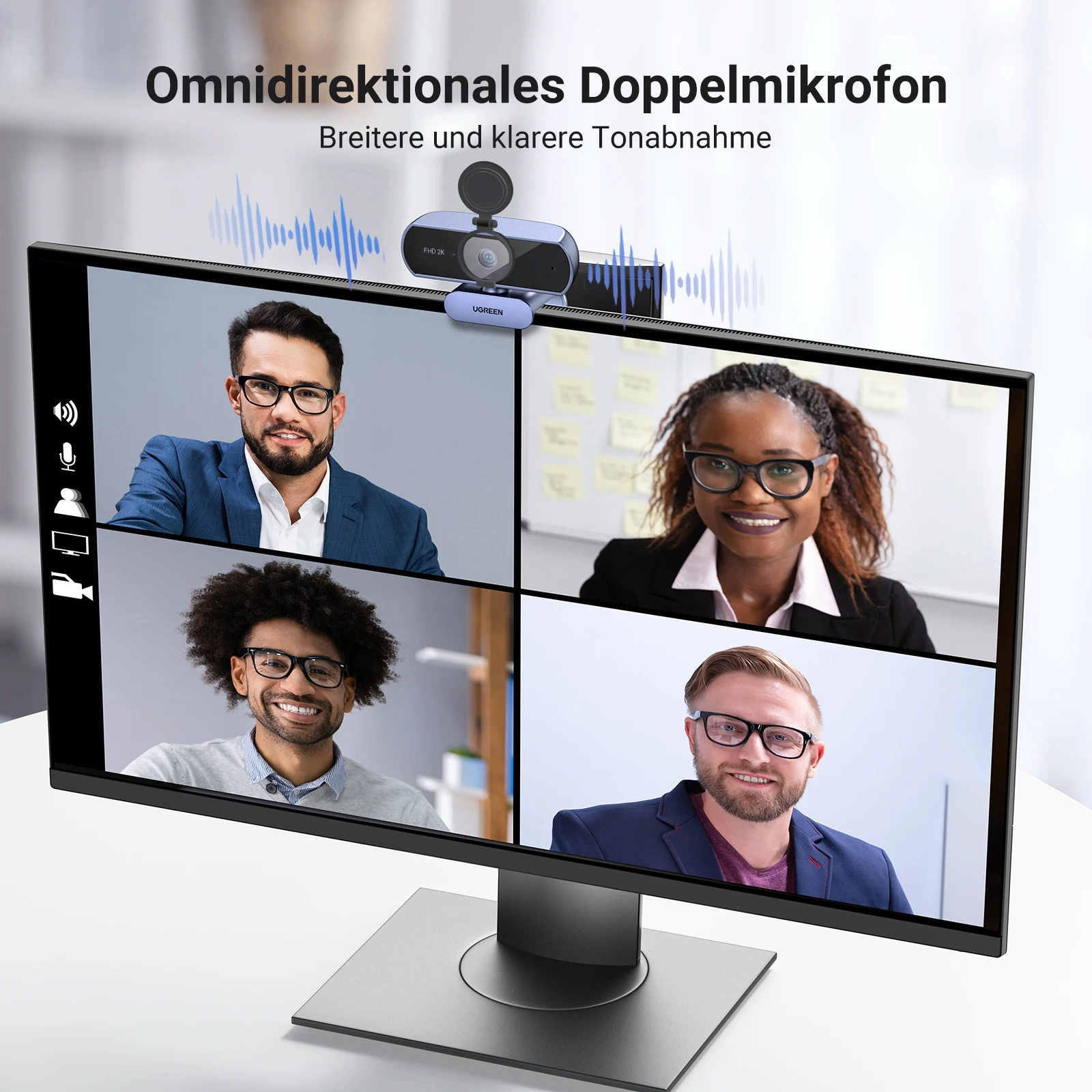 Comprar UGREEN-minicámara Web 2K HD con USB, videocámara para ordenador portátil, micrófonos duales para Youtube, Zoom, videollamadas, 30fps