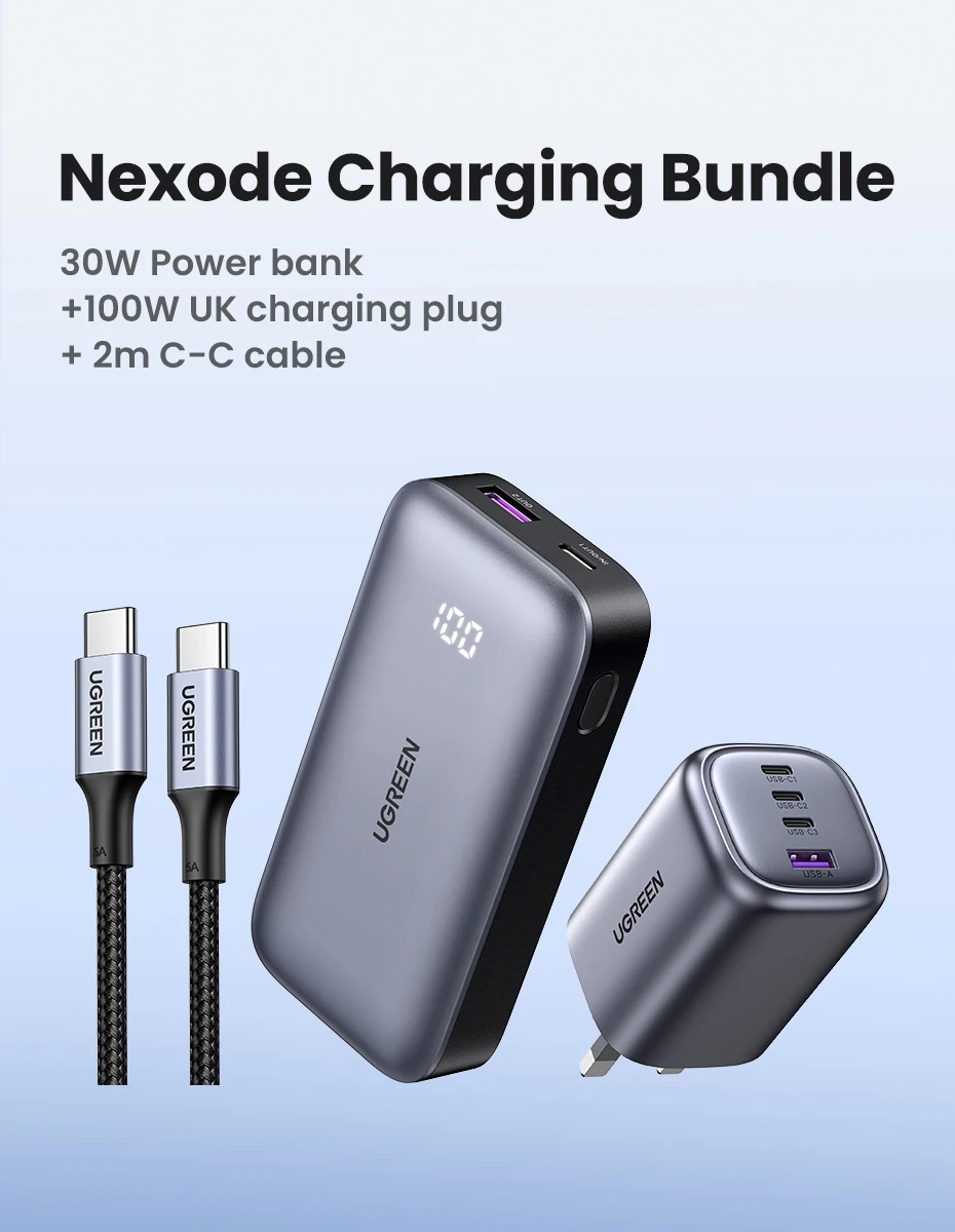 Comprar UGREEN-Paquete de carga nemode PD30W, Banco de energía de 10000mAh, cargador de enchufe británico de 100W con Cable de 2M
