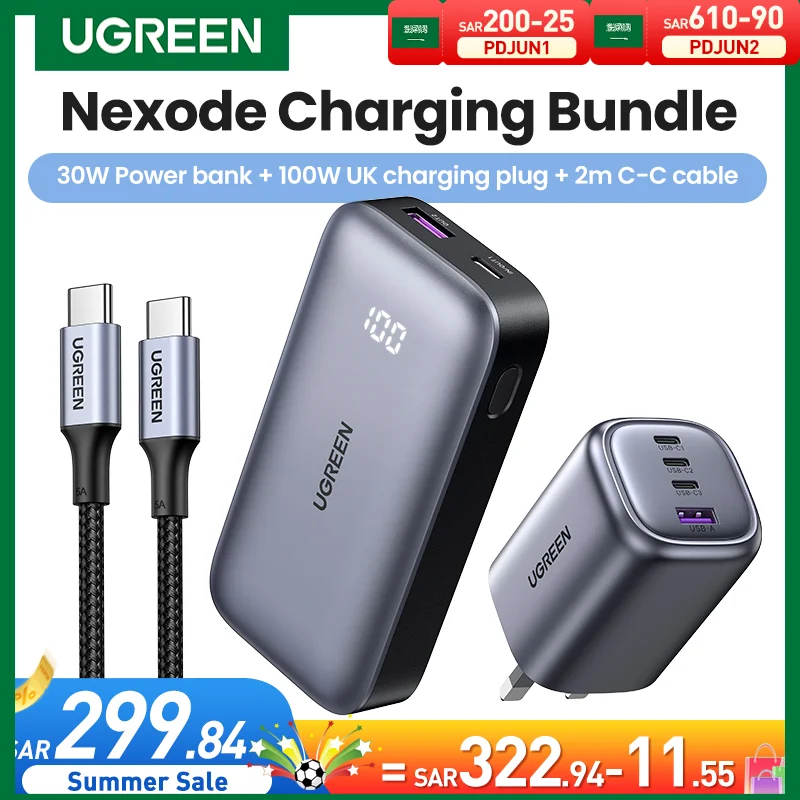 Comprar UGREEN-Paquete de carga nemode PD30W, Banco de energía de 10000mAh, cargador de enchufe británico de 100W con Cable de 2M
