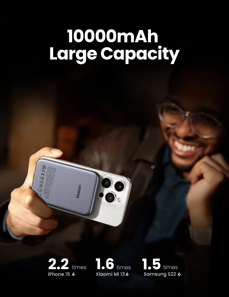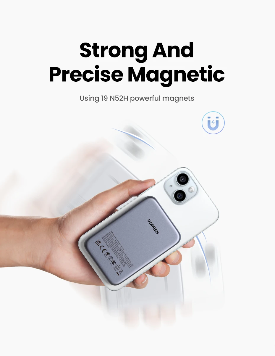 Esta power bank de marca Ugreen, me encantó es super compacta, algo pesada pero es entendible debido a su capacidad de carga, si carga de manera rápida un iPhone 15 y se adhiere gracias a sus imanes de manera adecuada.