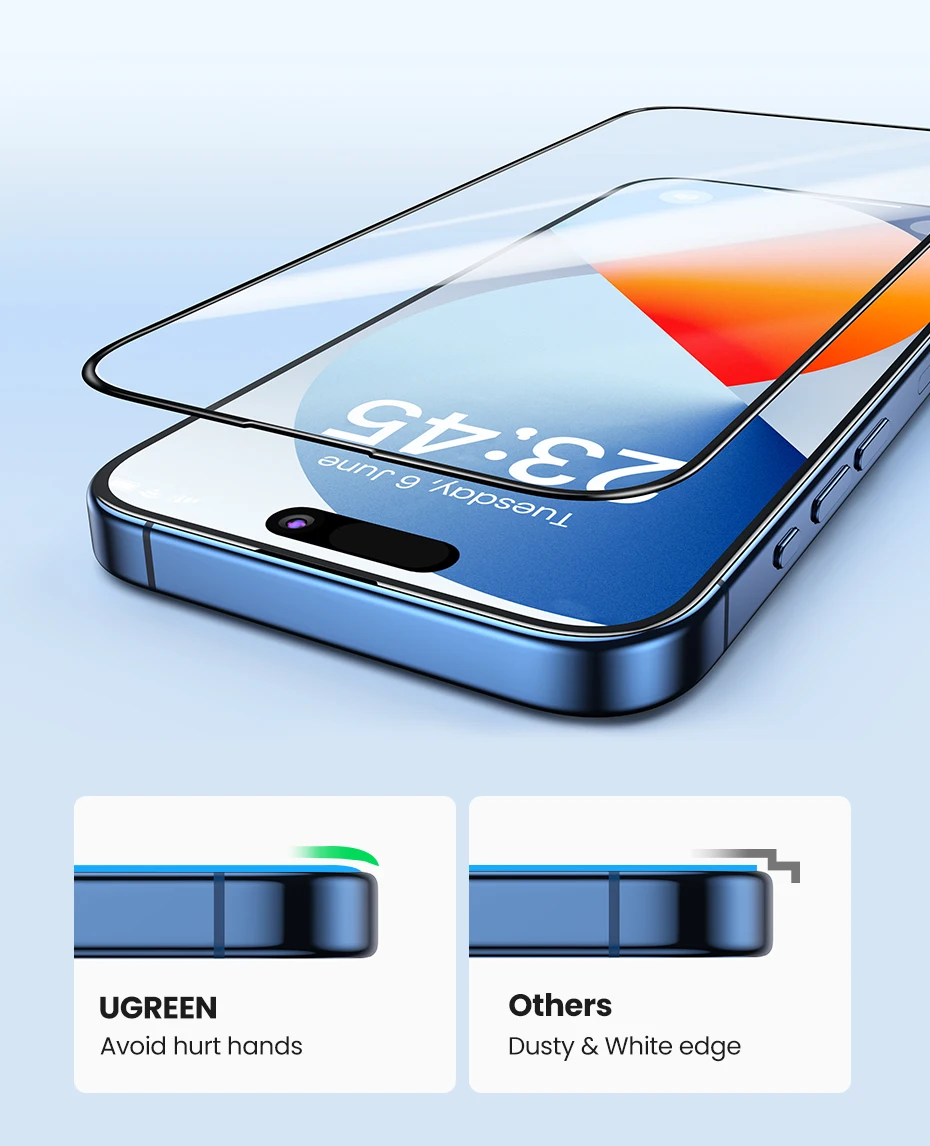 El borde del arco 9D se ajusta firmemente a la pantalla y las esquinas también están cubiertas, totalmente a prueba de polvo