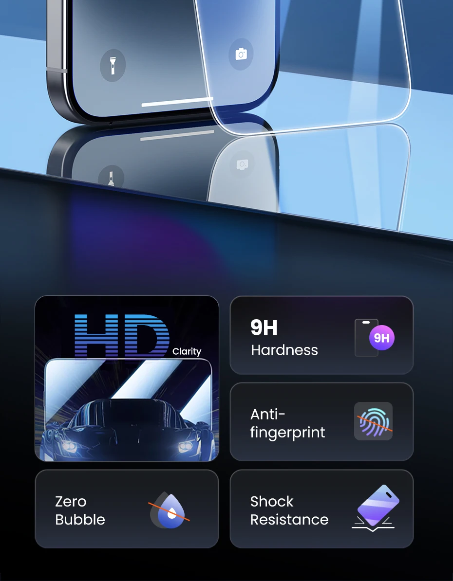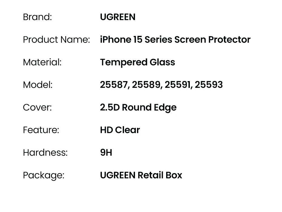 Comprar UGREEN-Protector de pantalla de vidrio templado para iPhone, película HD para iPhone 15 Pro Max, 14, 13, 12, 11, XR