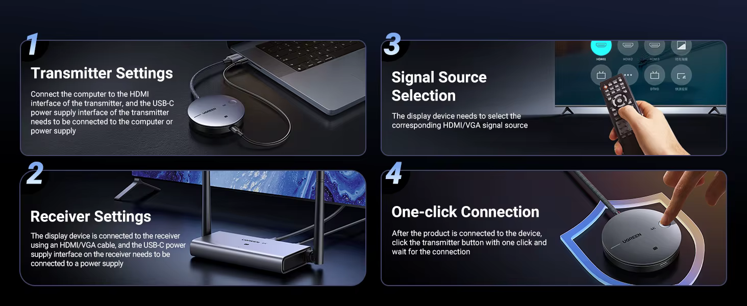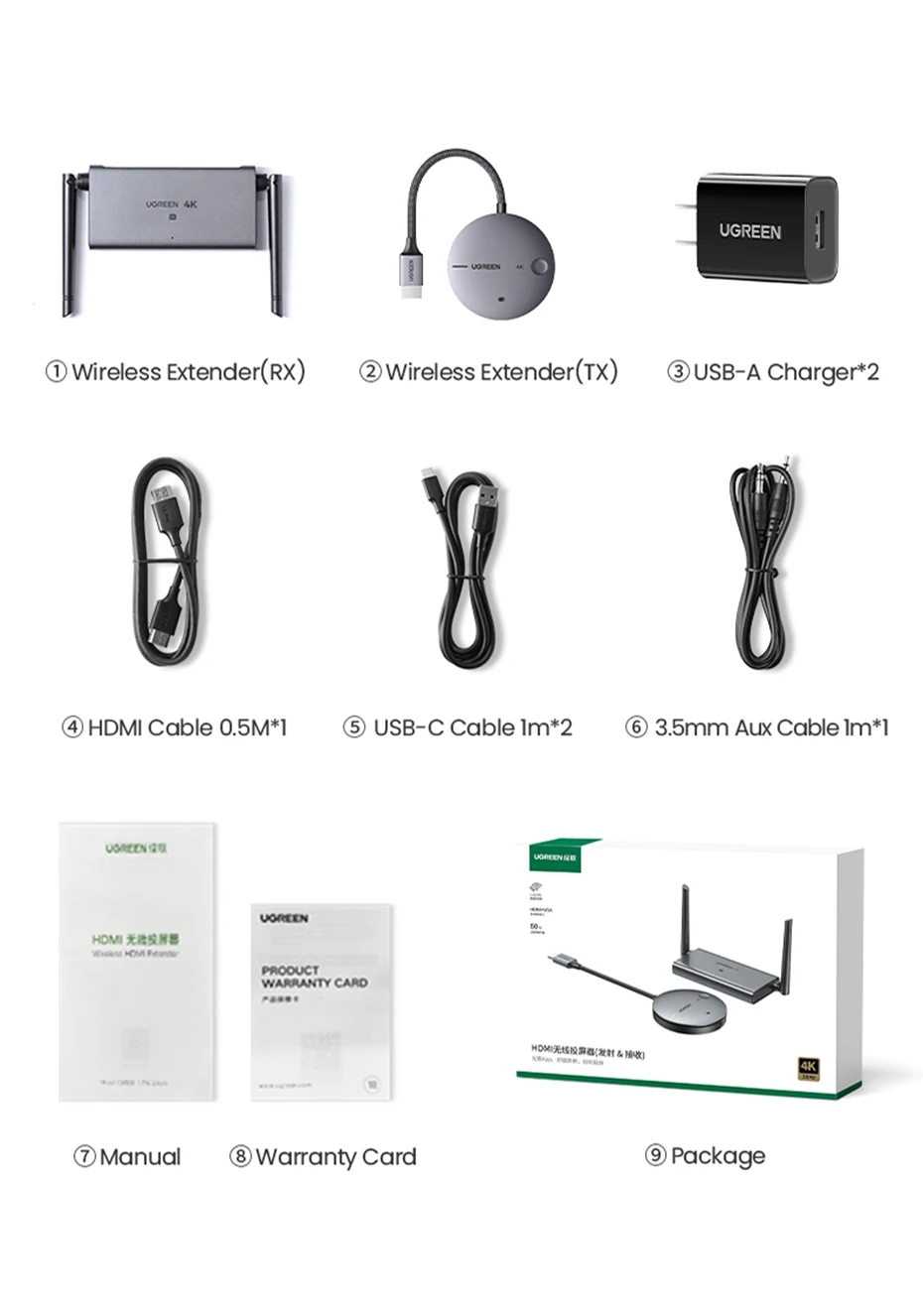 Comprar UGREEN-proyector de pantalla inalámbrico, Kit de transmisor y receptor de vídeo, extensor HDMI, 5G, 50M, transmisor Dongle para TV, PC, Monitor de PS5