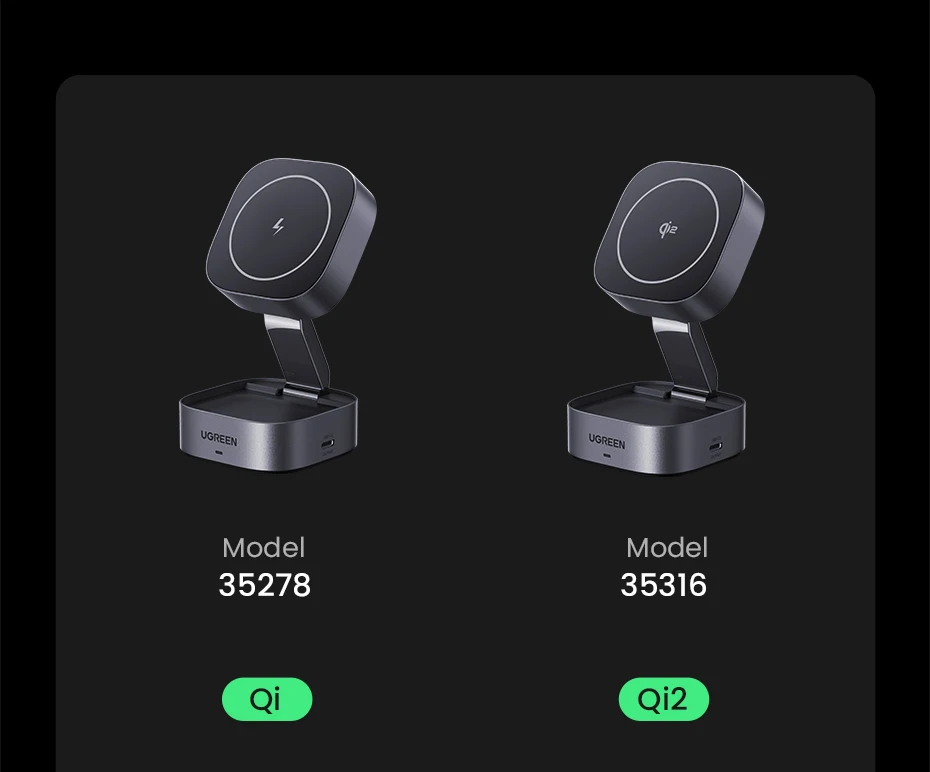 Estimado cliente, ¡preste atención al realizar un pedido!Hay dos opciones para carga inalámbrica de 25 W: [Qi] y [actualización Qi].La mayor diferencia es que la versión mejorada Qi2 admite la carga rápida real de iPhone de 15 W, que es la misma velocidad que la oficial; La versión Qi admite carga de iPhone de 7,5 W.