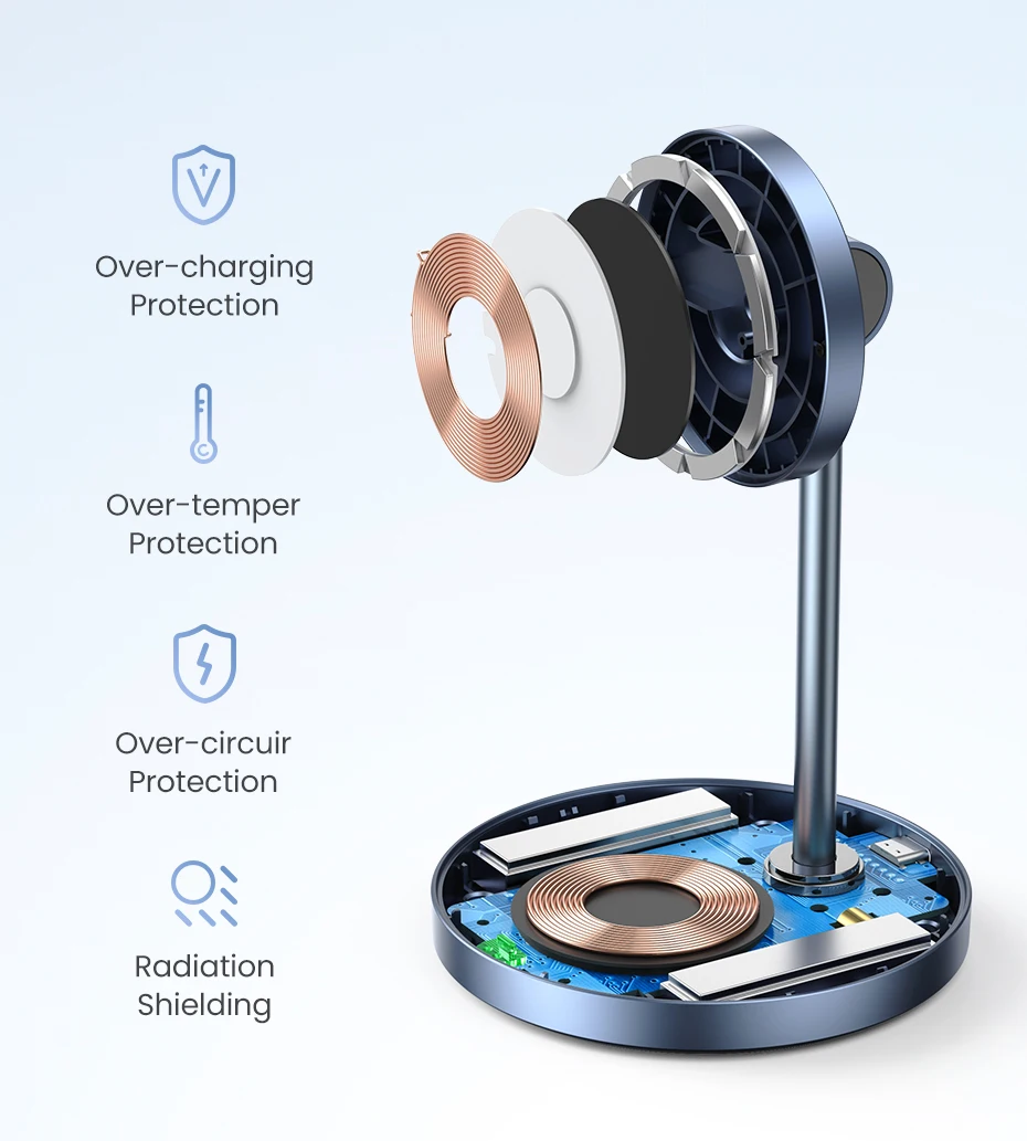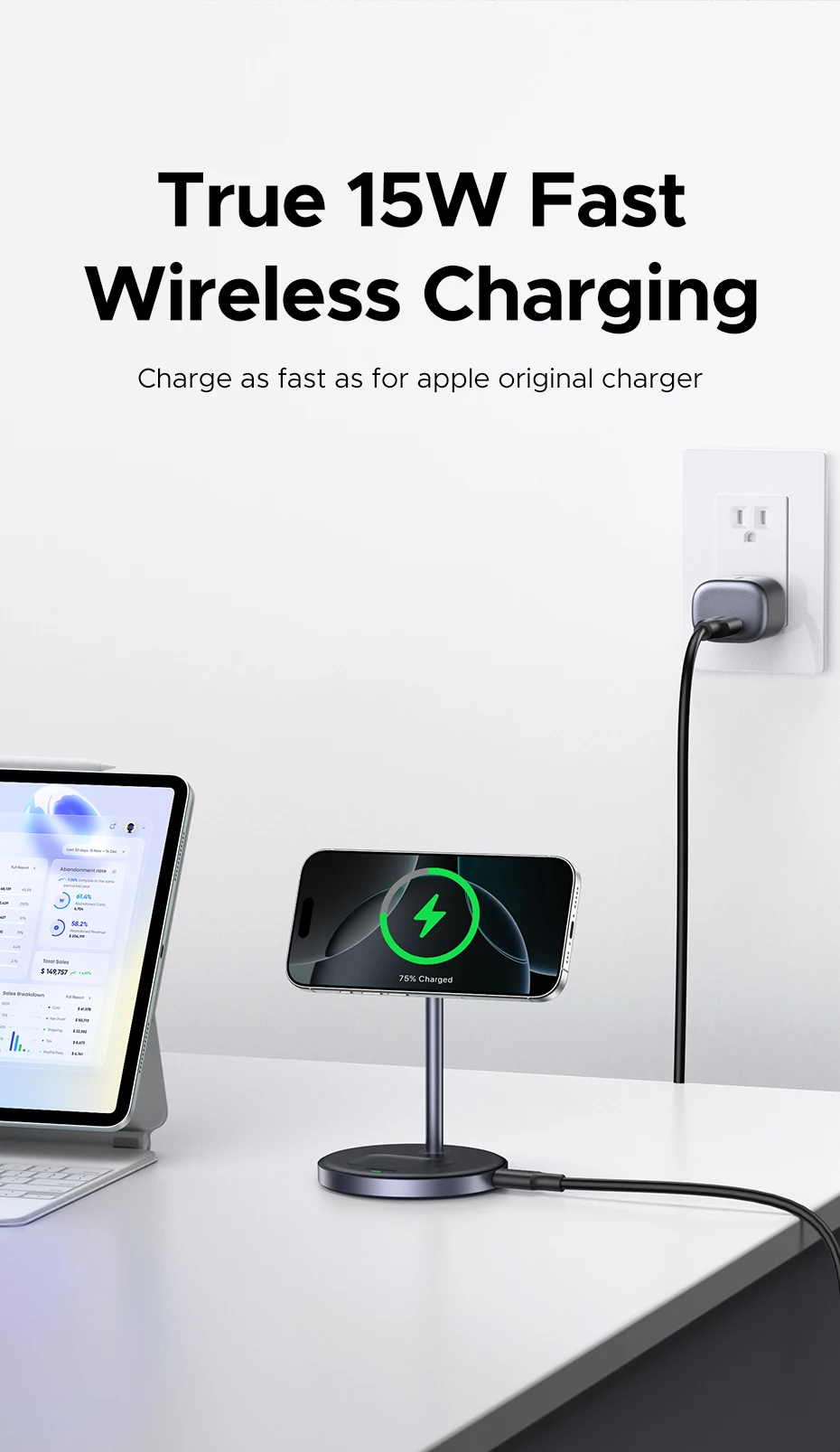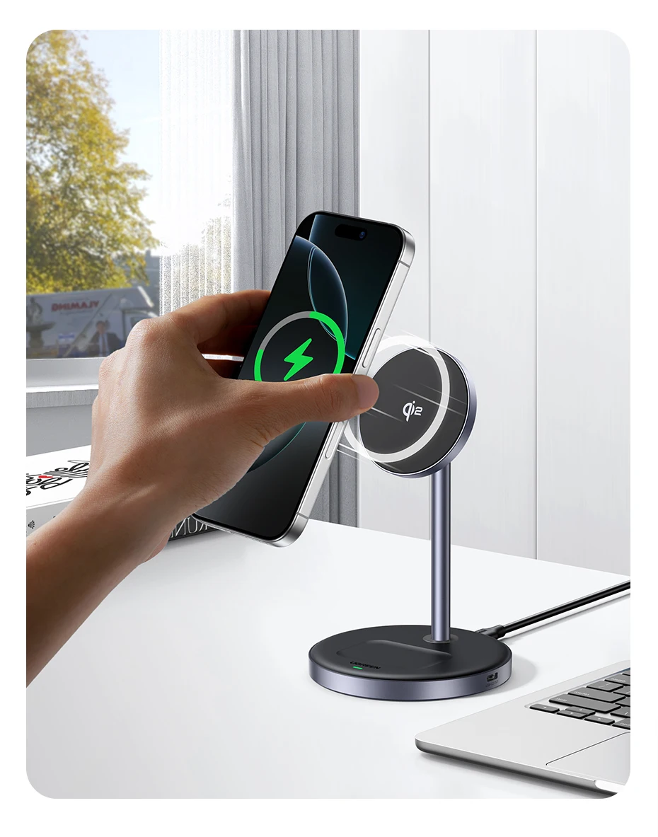 Qi2 25W máx.Soporte de carga magnético 2 en 1Carga inalámbrica para iPhone y auriculares