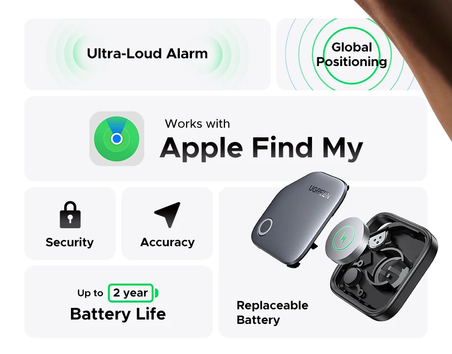 Comprar UGREEN Rastreador Bluetooth inteligente, buscador de llaves Localizador de artículos SmartTag Buscador de teléfono con batería de hasta 2 años para Apple Find My (solo IOS)