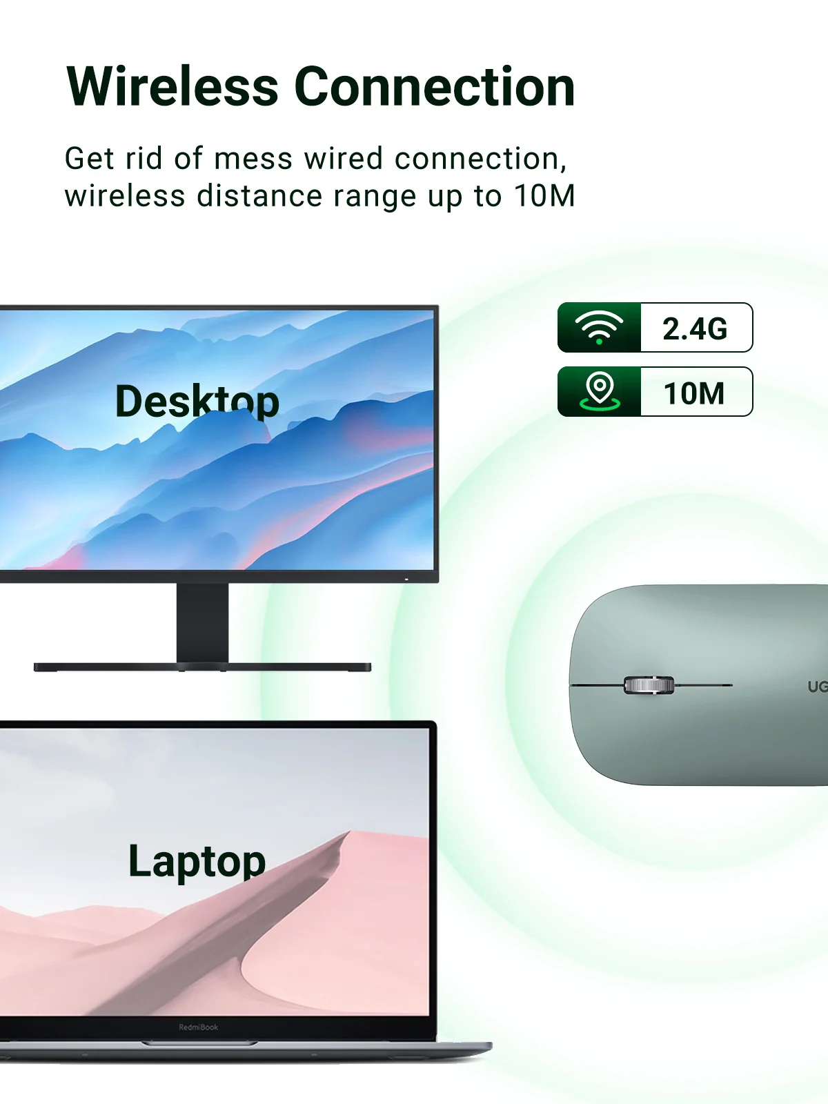 Comprar UGREEN-ratón inalámbrico de 4000 DPI, Mouse silencioso de 40db para MacBook Pro M1 M2 iPad, tableta, ordenador portátil, PC, 2,4G
