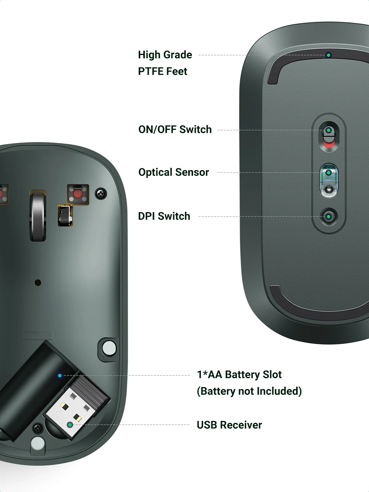 ✔DPI de 2 niveles: 1600, el cursor del ratón se mueve lentamente, adecuado para uso diario en la oficina