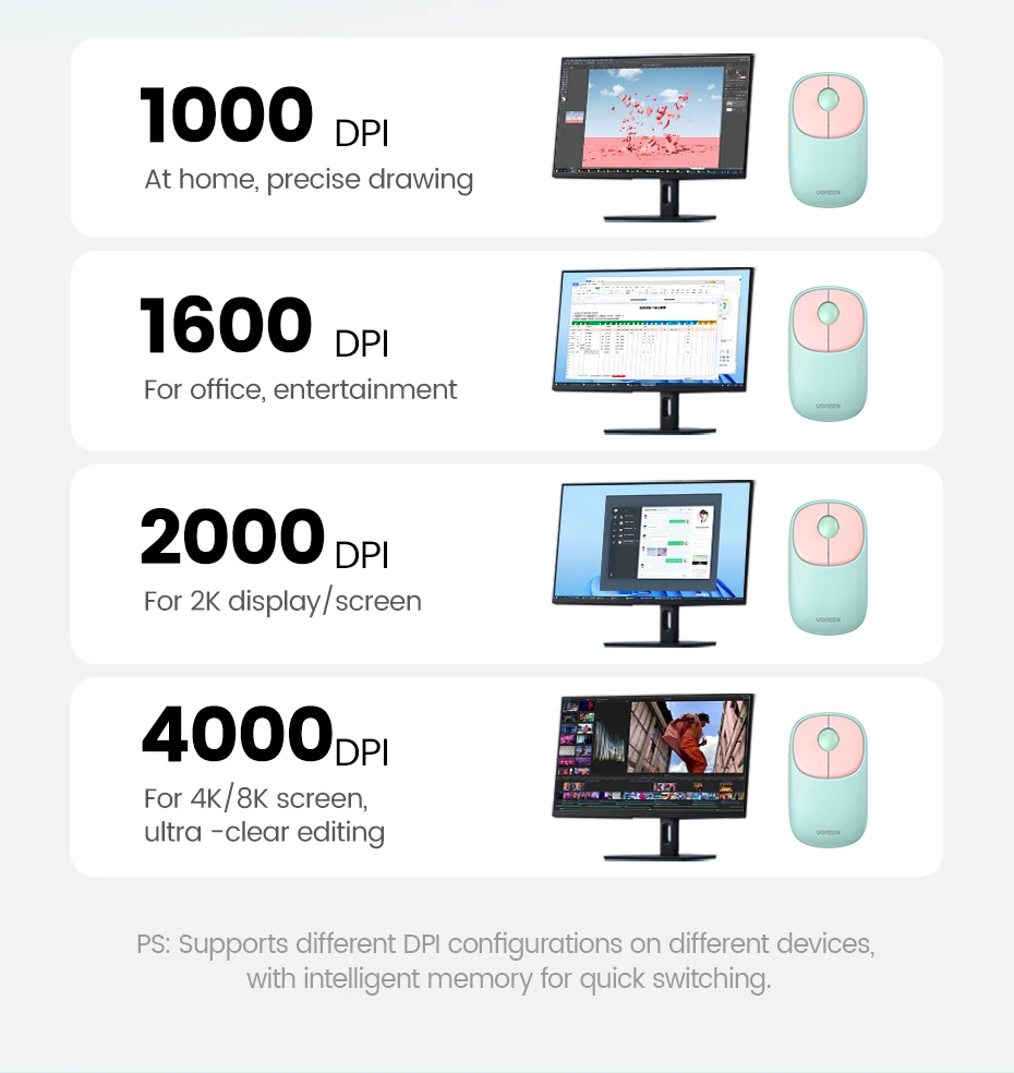 * Ps: admite diferentes configuraciones de DPI en diferentes dispositivos, con memoria inteligente para un cambio rápido.