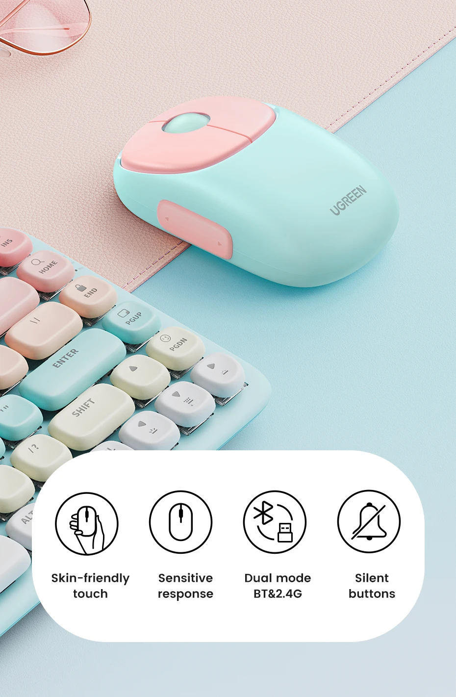 Comprar UGREEN-ratón inalámbrico con Bluetooth 5,0, Mouse recargable de 2,4G, carga de 4000 DPI, para MacBook, iPad, tableta y ordenador portátil