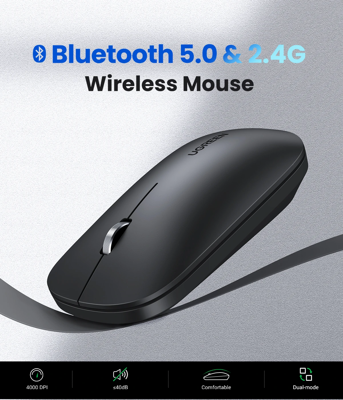 ✔Bluetooth 5,0 inalámbrico✔2,4G inalámbrico✔Modo dual✔4000DPI máx.