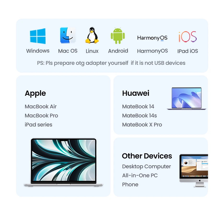 Compatible con Windows,Mac OS, Linux, Android, HarmonyOS, iOS...