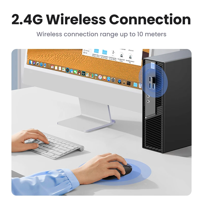 Un DPI ajustable (nivel 2400/1600/1200/800) del ratón inalámbrico para portátil proporciona la sensibilidad perfecta para cualquier tarea. El sensor óptico suave y preciso permite un seguimiento rápido y preciso, particularmente durante el funcionamiento a alta velocidad y varias superficies.