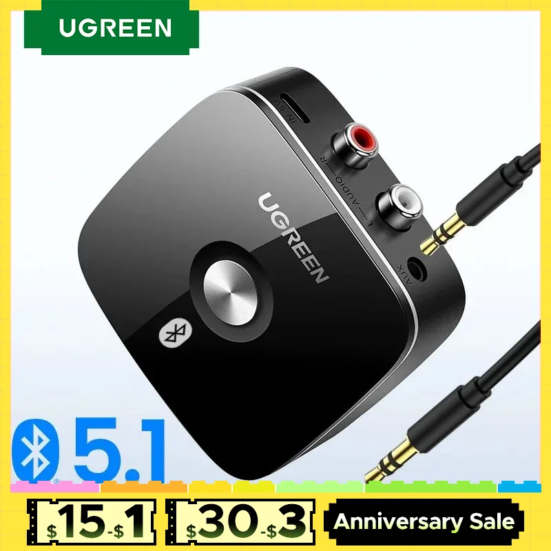 Comprar UGREEN-receptor de Audio con Bluetooth 5,1, adaptador inalámbrico aptX HD de 3,5mm, Jack Aux, música para TV y coche, 2RCA, aptX