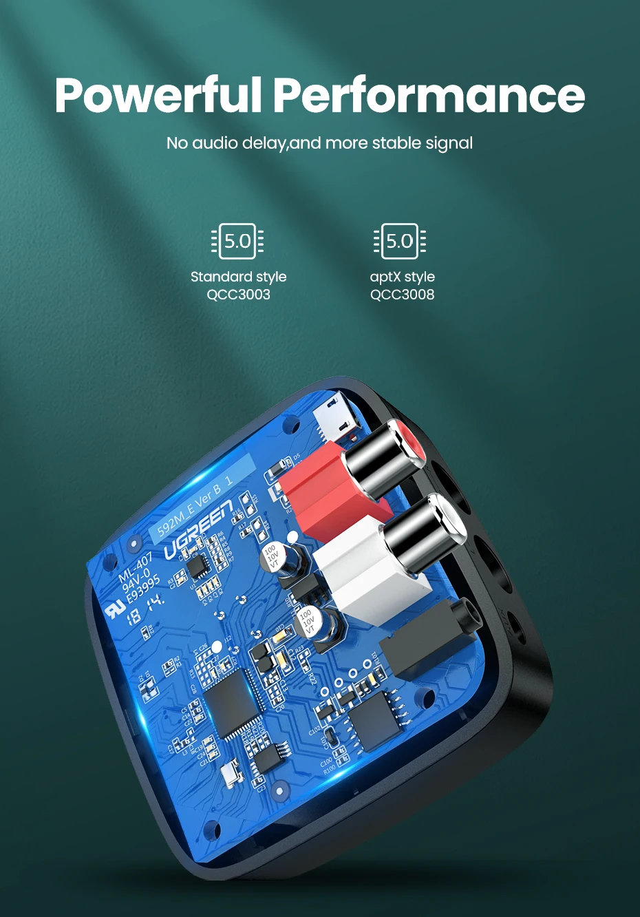 Comprar UGREEN-receptor de Audio RCA con Bluetooth 5,1, adaptador inalámbrico aptX HD de 3,5mm, Jack Aux, música para TV y coche, 5,0, 3,5