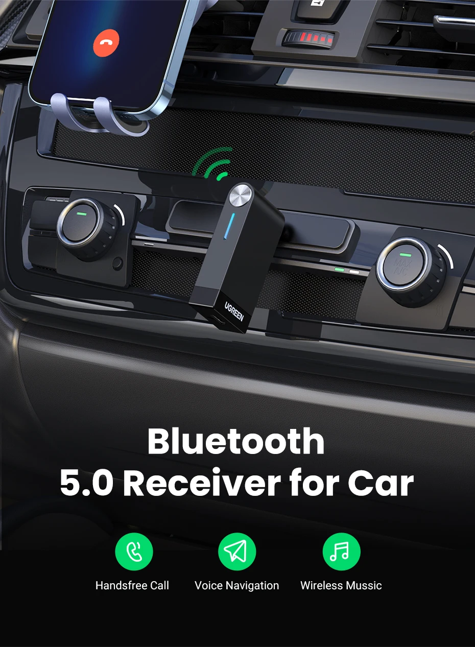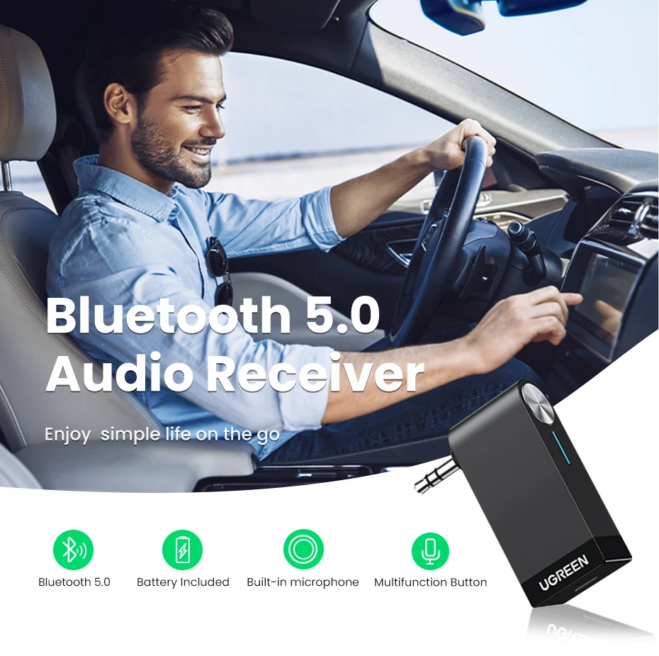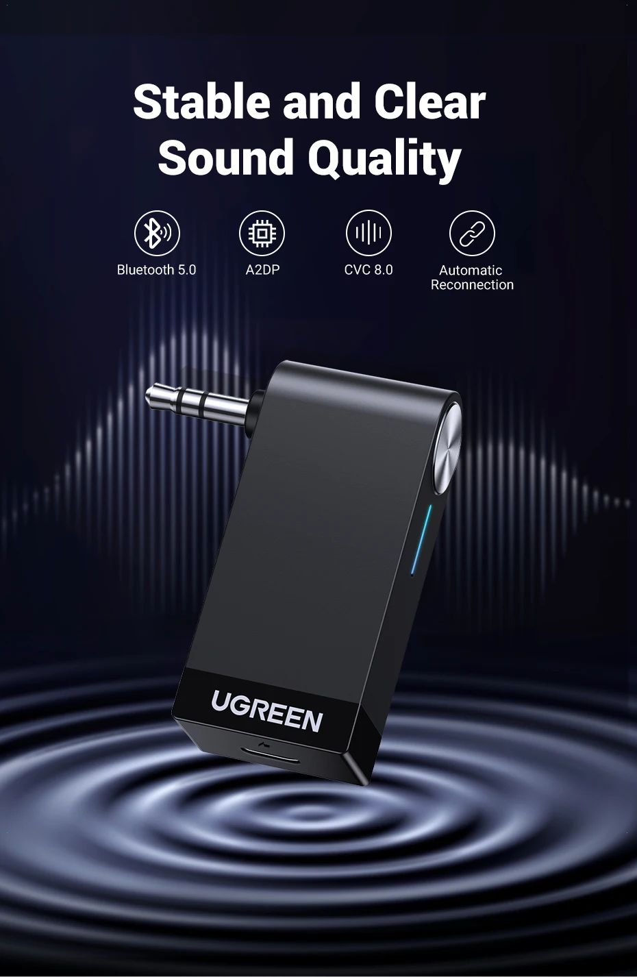 Comprar UGREEN-receptor AUX Bluetooth 3,5mm para coche, adaptador Bluetooth portátil para coche, auriculares estéreo/con cable para casa