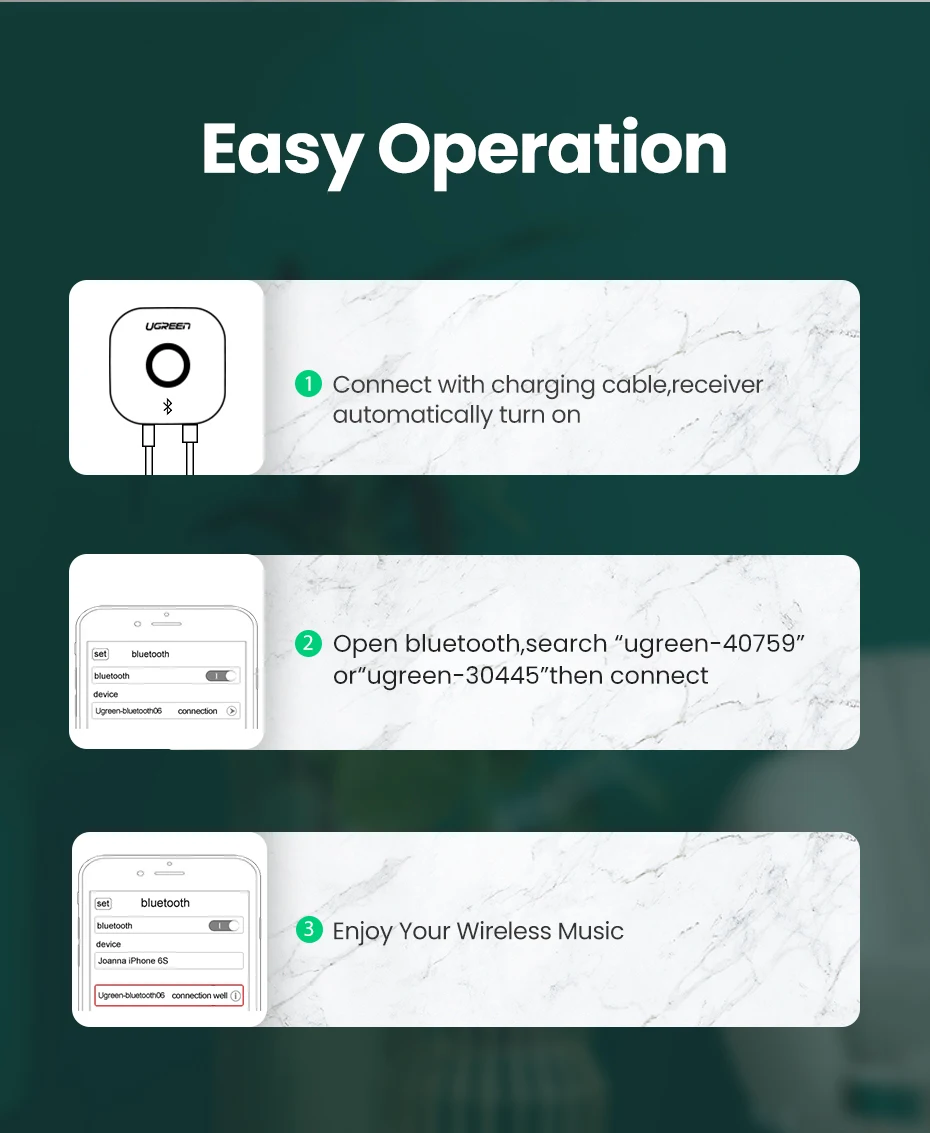 Con opciones de conexión de 3,5mm y 2RCA, puede disfrutar de música de forma inalámbrica en 2 altavoces simultáneamente.