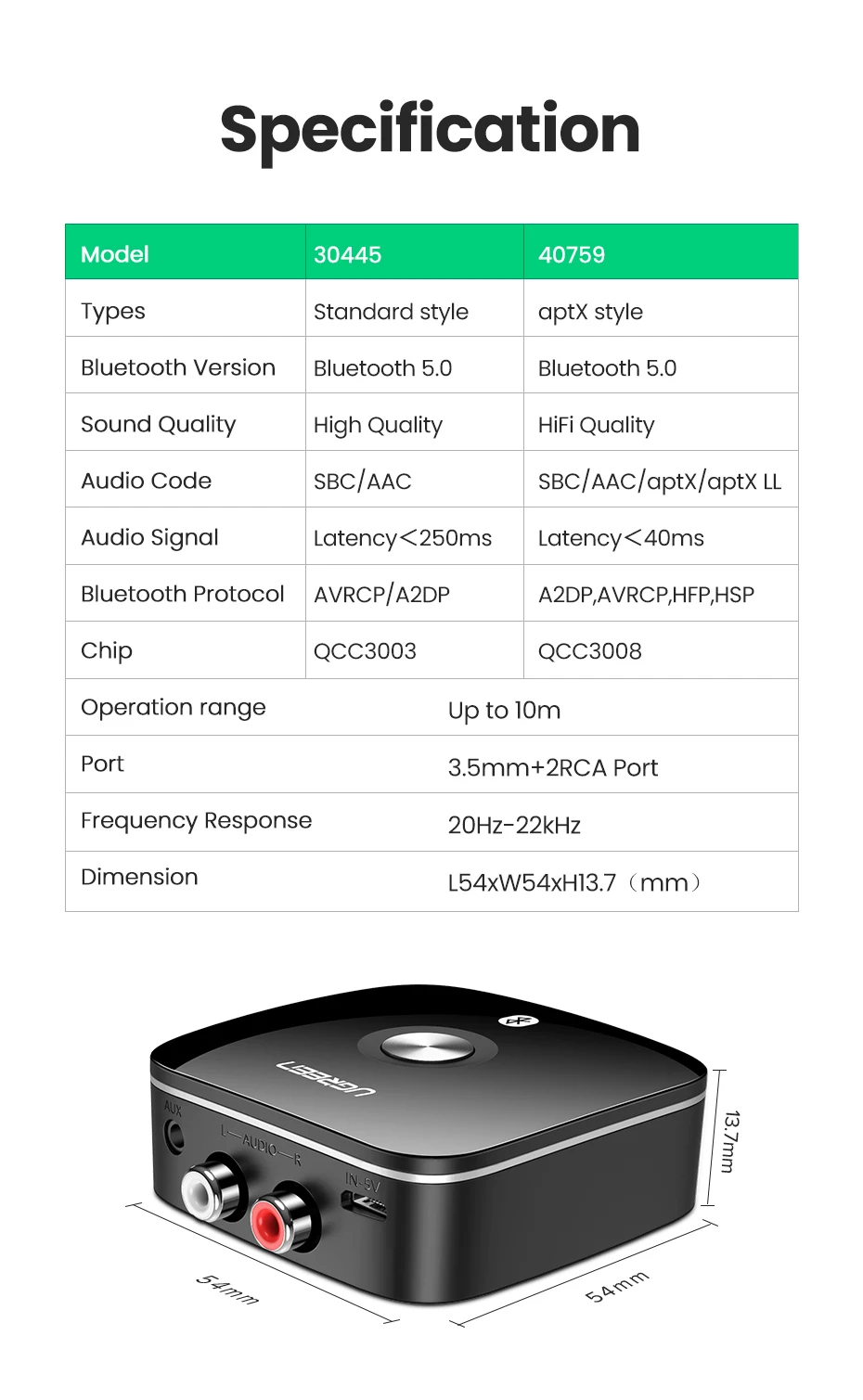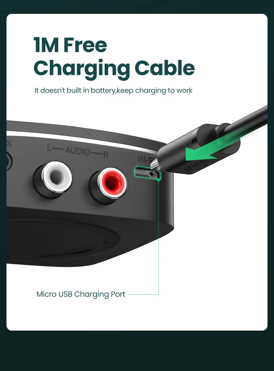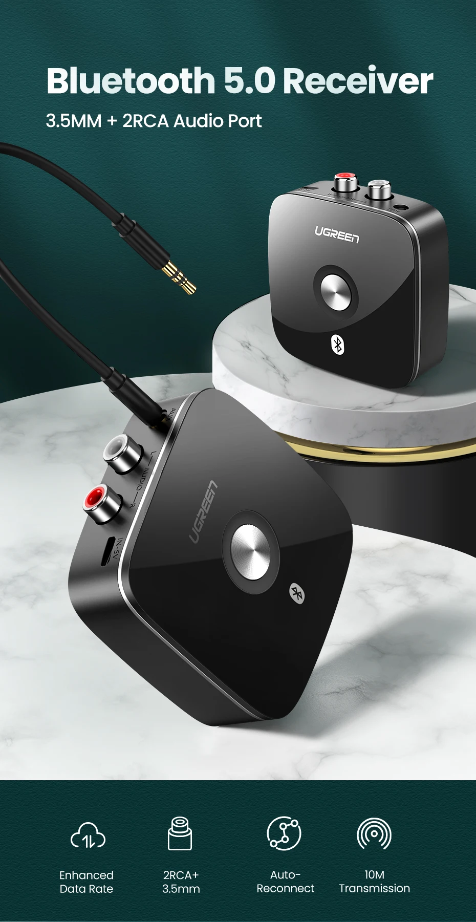 Comprar UGREEN Receptor Bluetooth 5.1 Música inalámbrica Auido 3,5 mm RCA aptX HD Música de baja latencia Bluetooth 5.0 Sonido Adaptador 2RCA de 3,5 mm