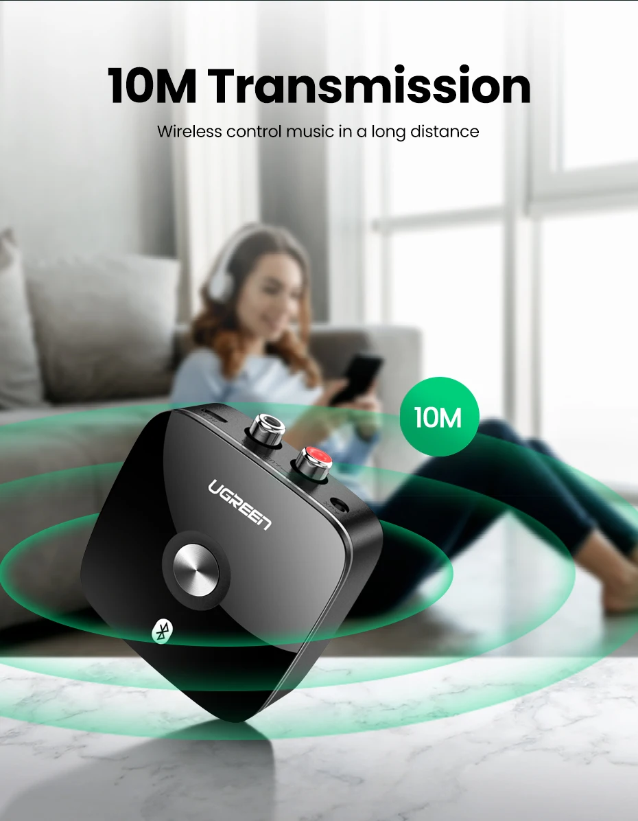 El adaptador inalámbrico Bluetooth admite la conexión de hasta 10 metros/33 pies, controlando la reproducción de música a larga distancia.