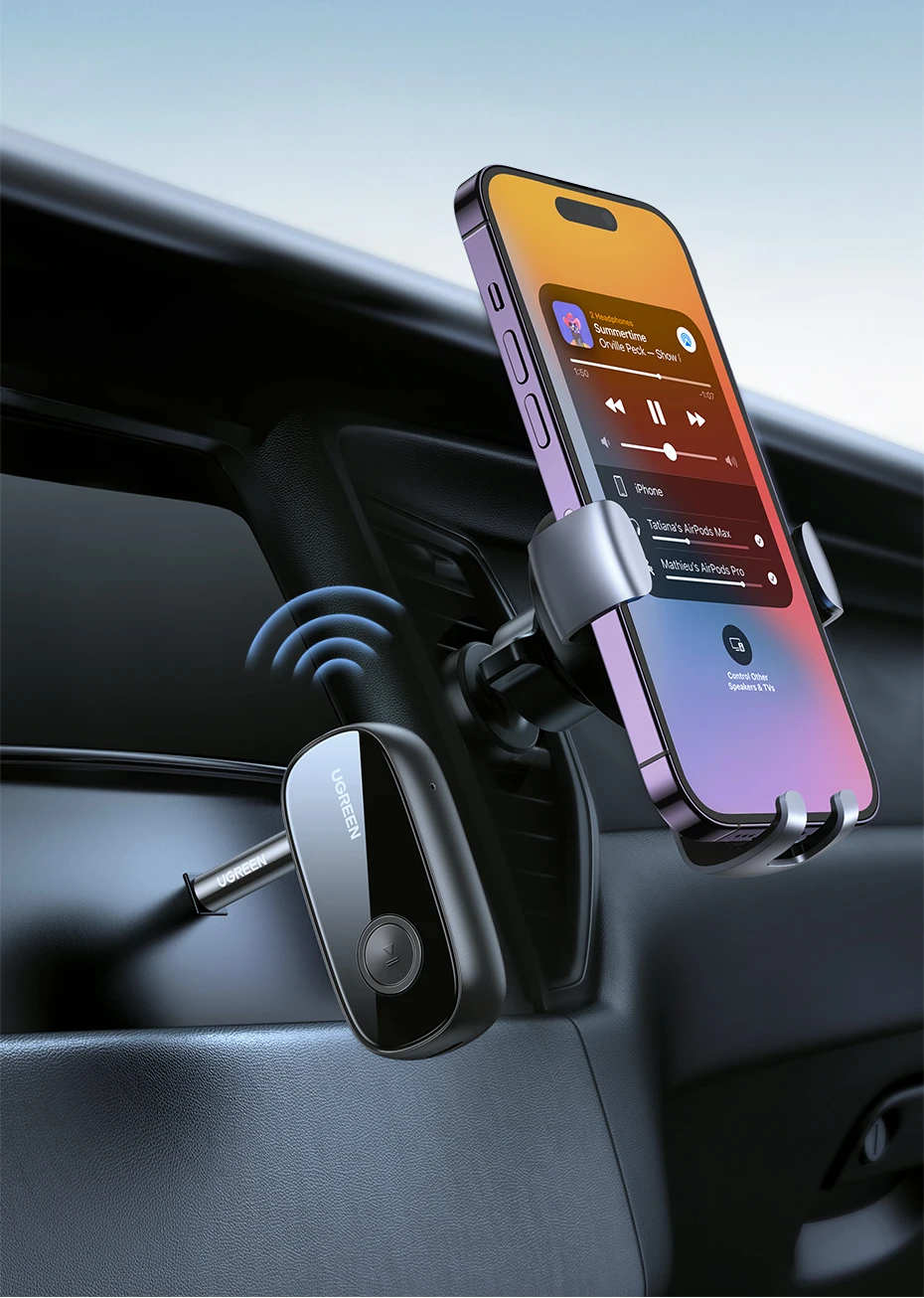 El receptor de audio se conecta a la entrada auxiliar de audio de su automóvil y se empareja con su dispositivo favorito habilitado para Bluetooth para transmitir su música favorita