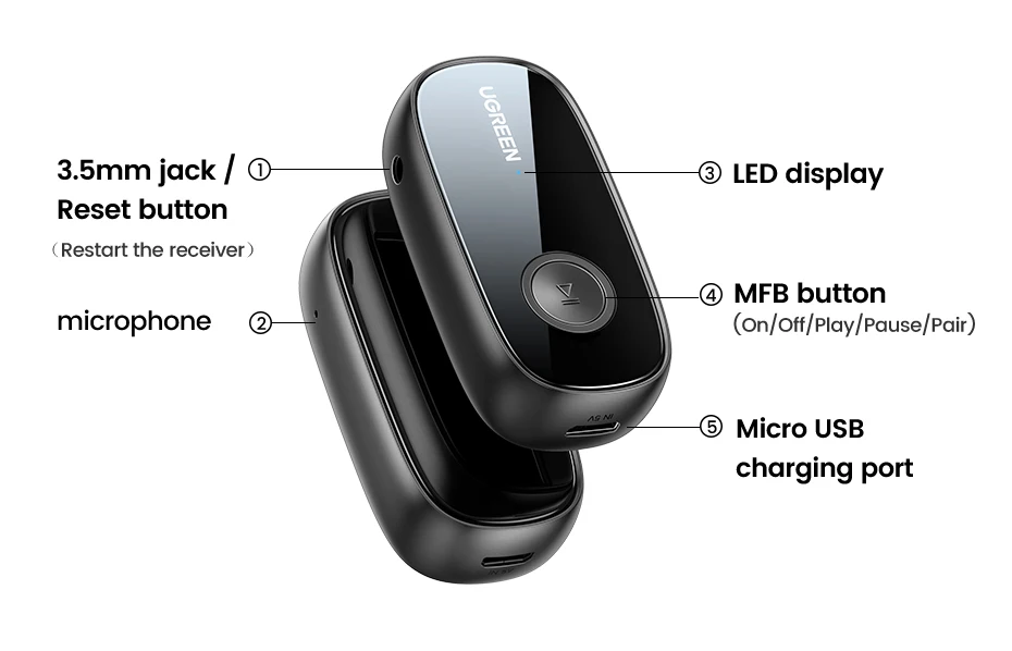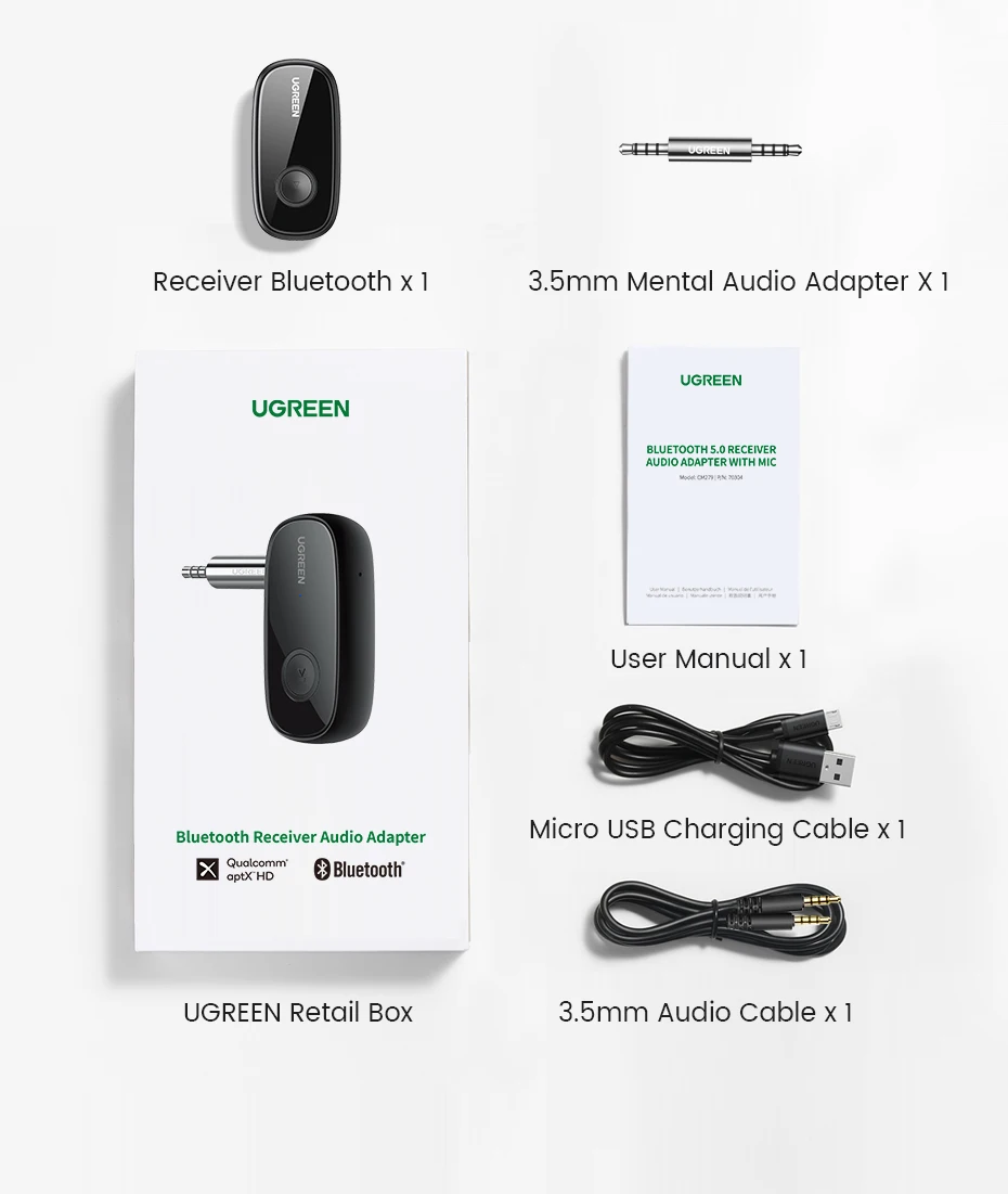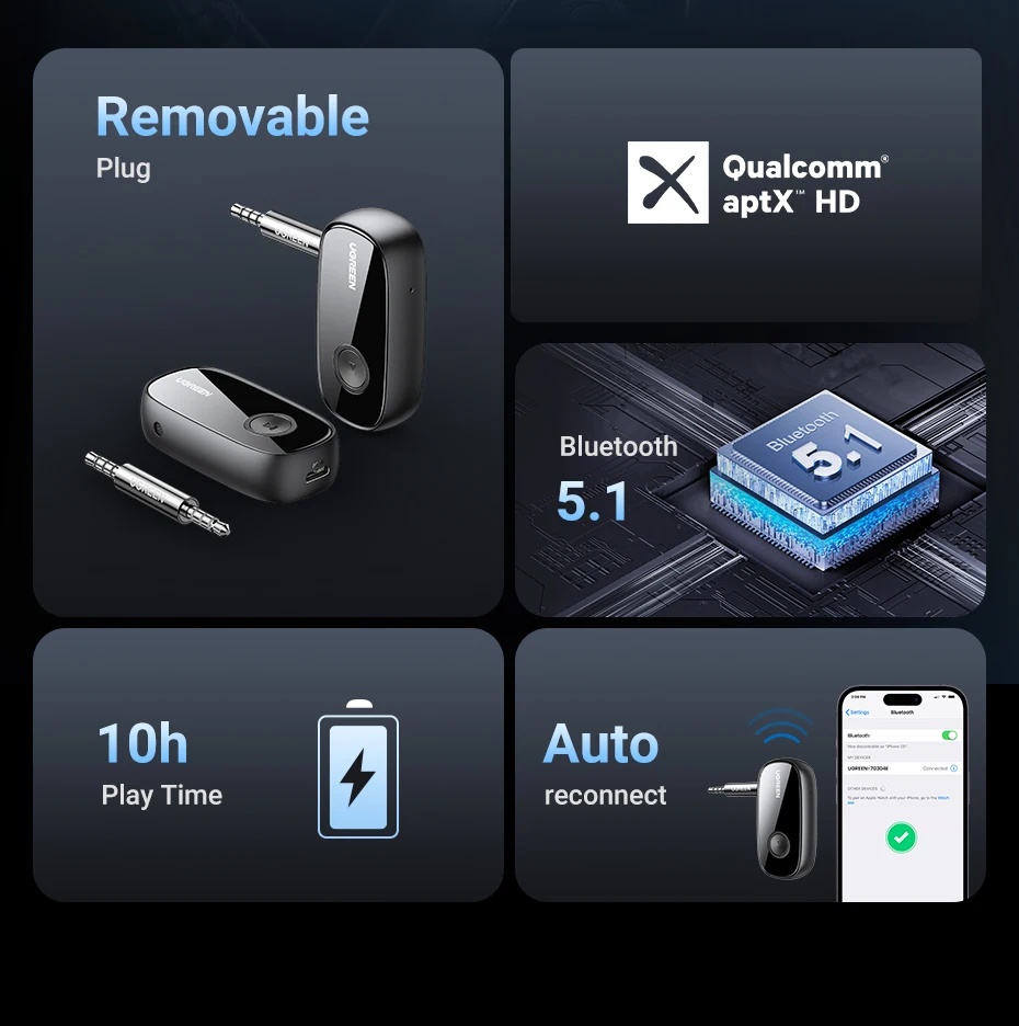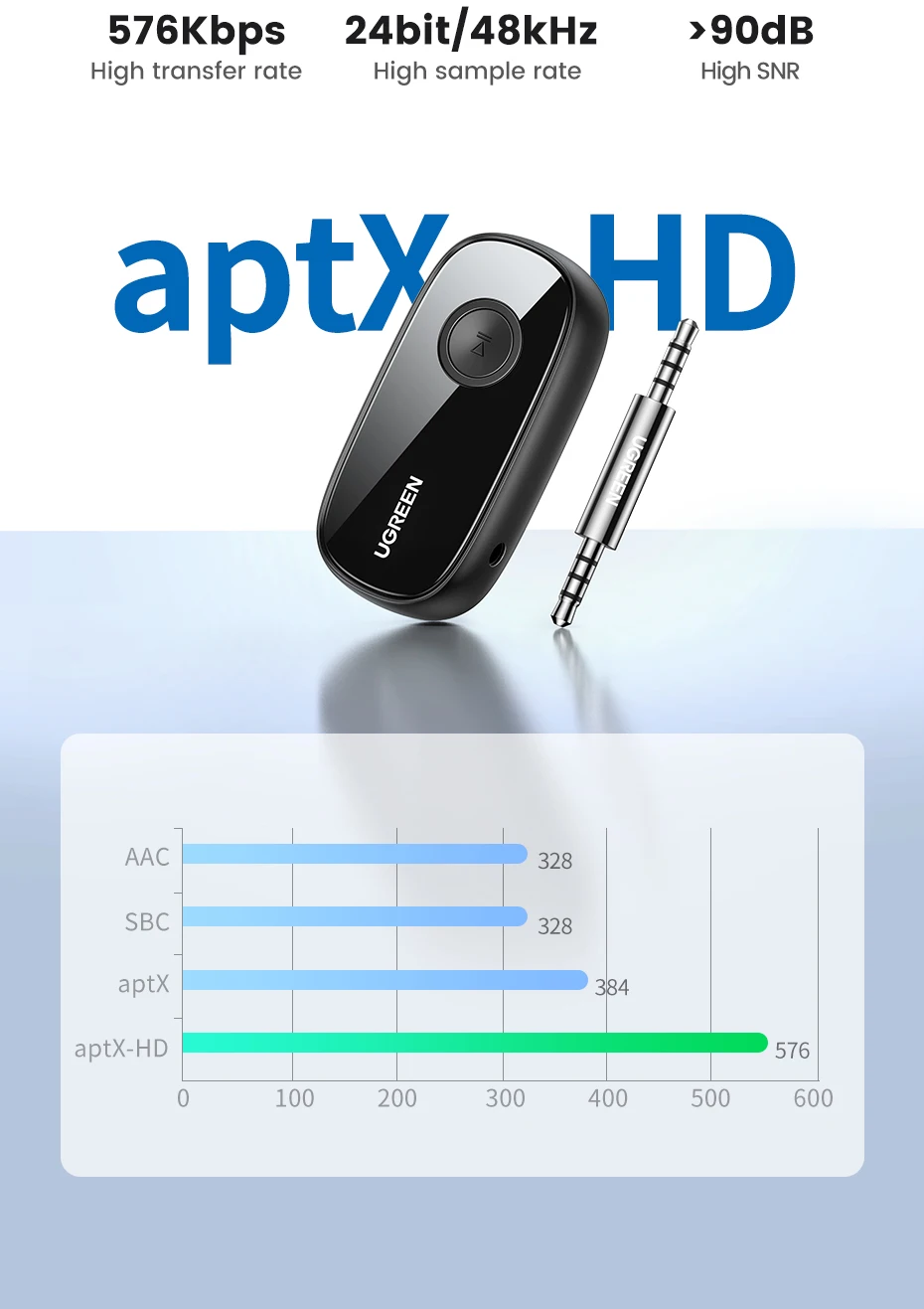 Comprar UGREEN-receptor Bluetooth aptX HD para coche, adaptador de Audio inalámbrico portátil, 5,1mm, Aux, con micrófono