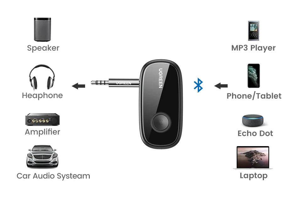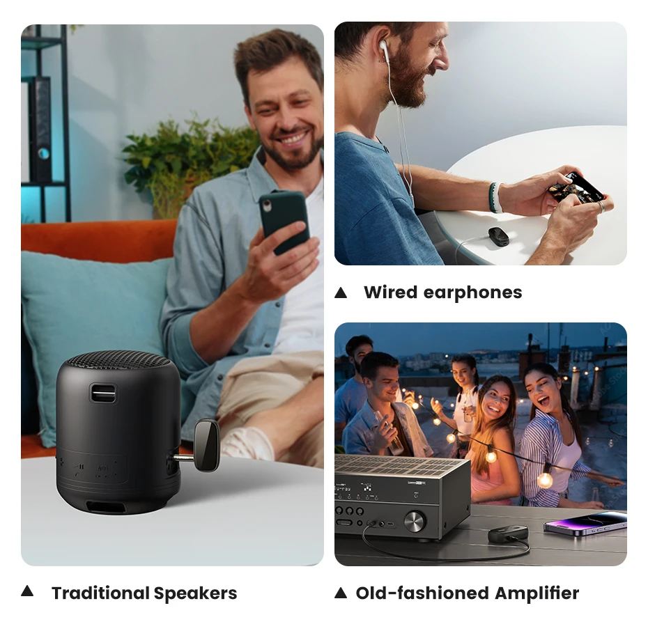 Este Bluetooth 5.0 El receptor se puede conectar a cualquier receptor A/V y a cualquier altavoz alimentado con estándar 3.Conector de 5 mm, ideal compatible con cines en casa, sistemas estéreo y estéreos para automóviles, también adecuado para iPhone, iPad, iPod Touch, teléfonos inteligentes y dispositivos Android.5 Conexión dual: