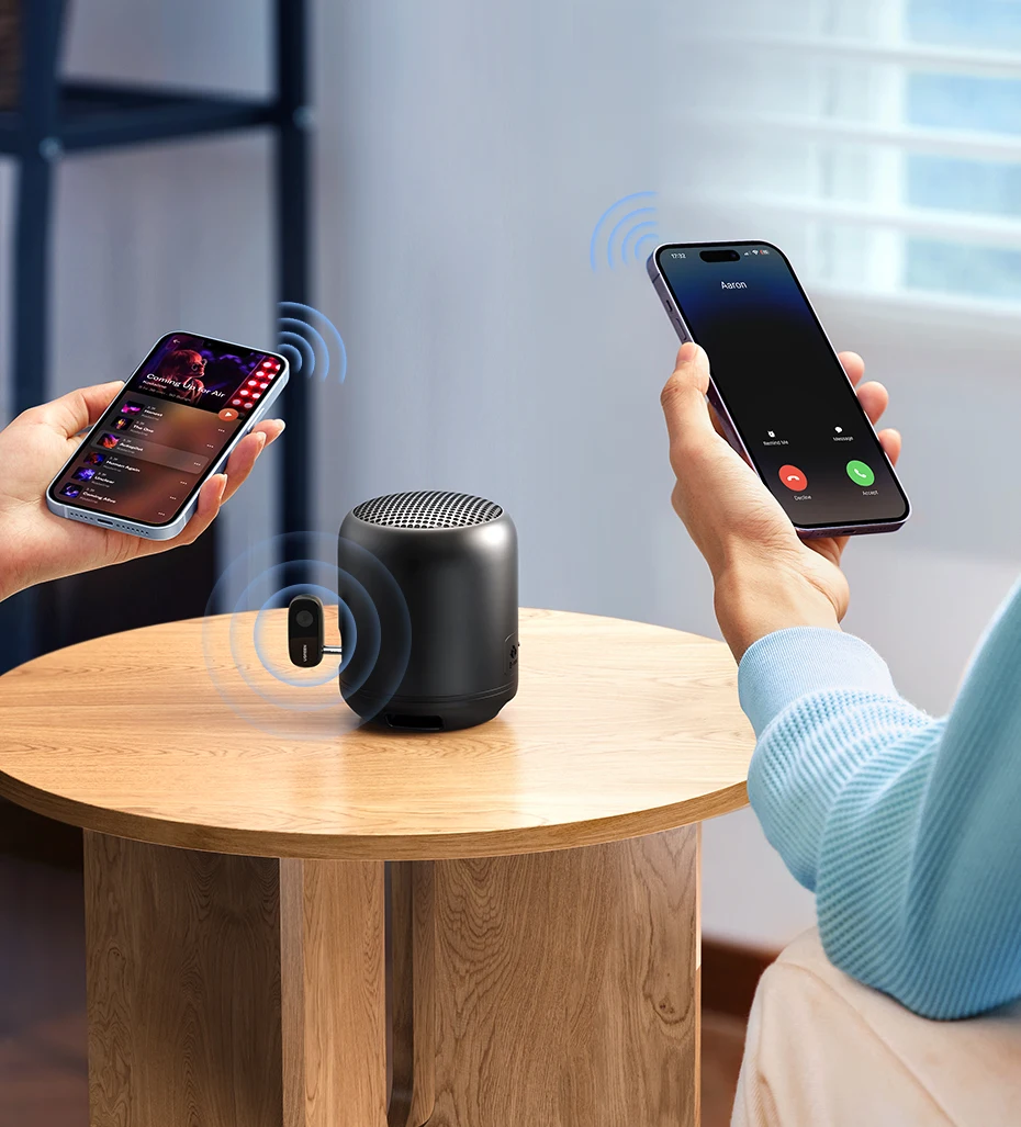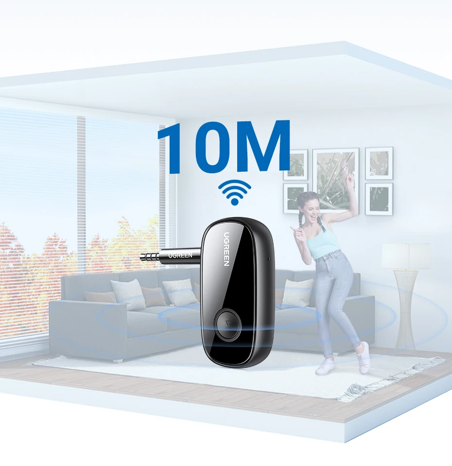 El adaptador inalámbrico Bluetooth admite una conexión de hasta 10 metros/33 pies, controlando la reproducción de música a larga distancia.